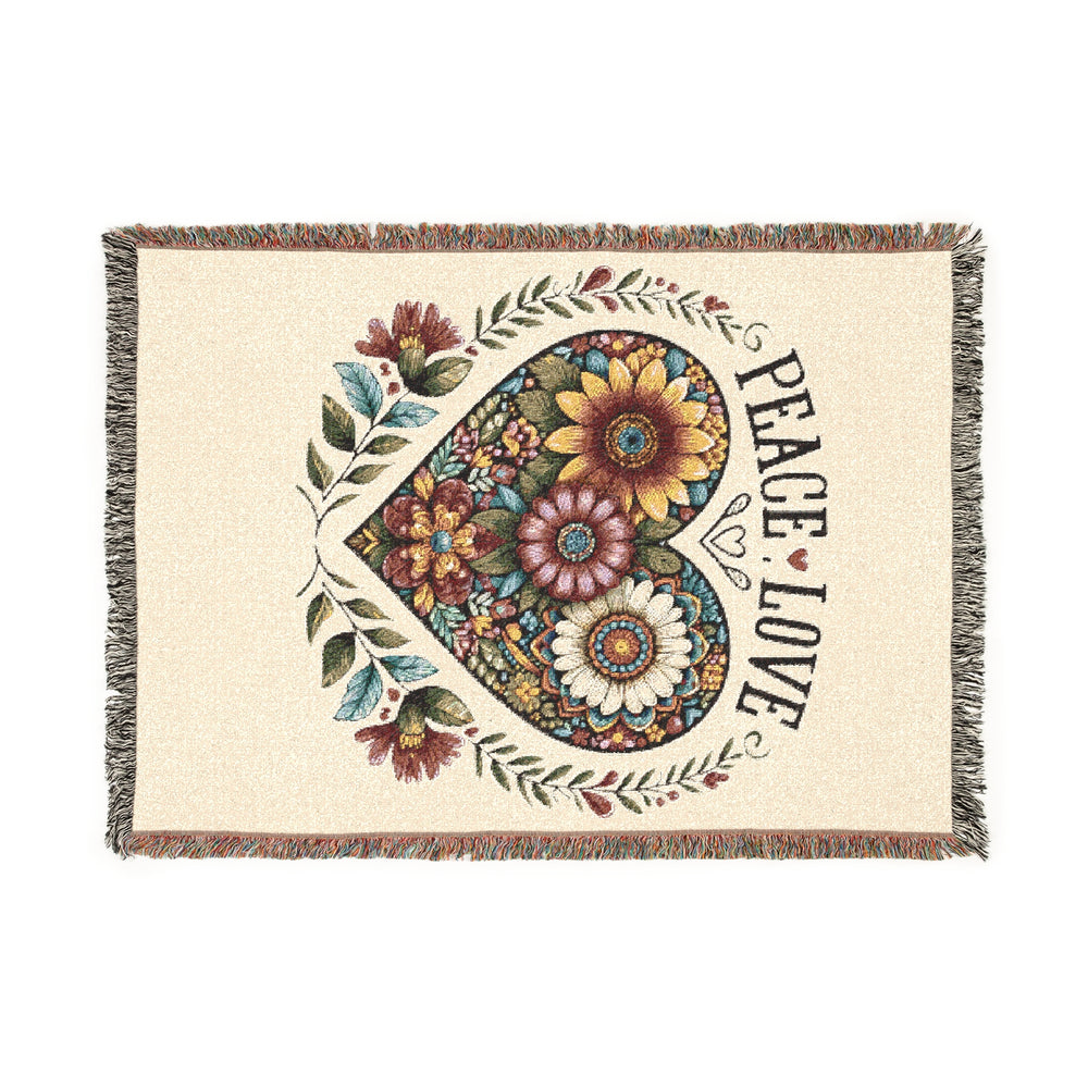 Peace, Love & Heart Woven Blanket –Meaningful Home Décor & Thoughtful Gift