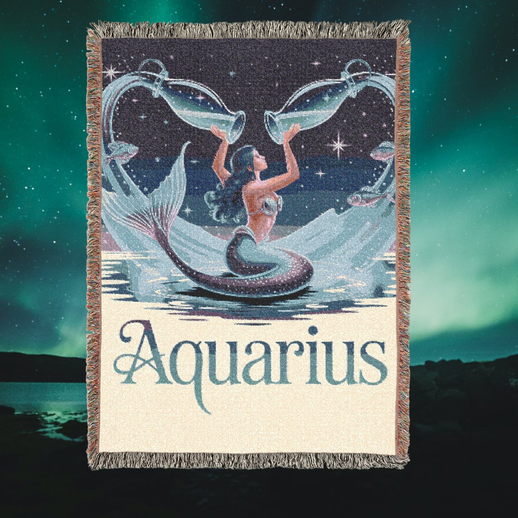 Aquarius Woven Blanket – Cozy Zodiac Throw, Astrology Home Décor