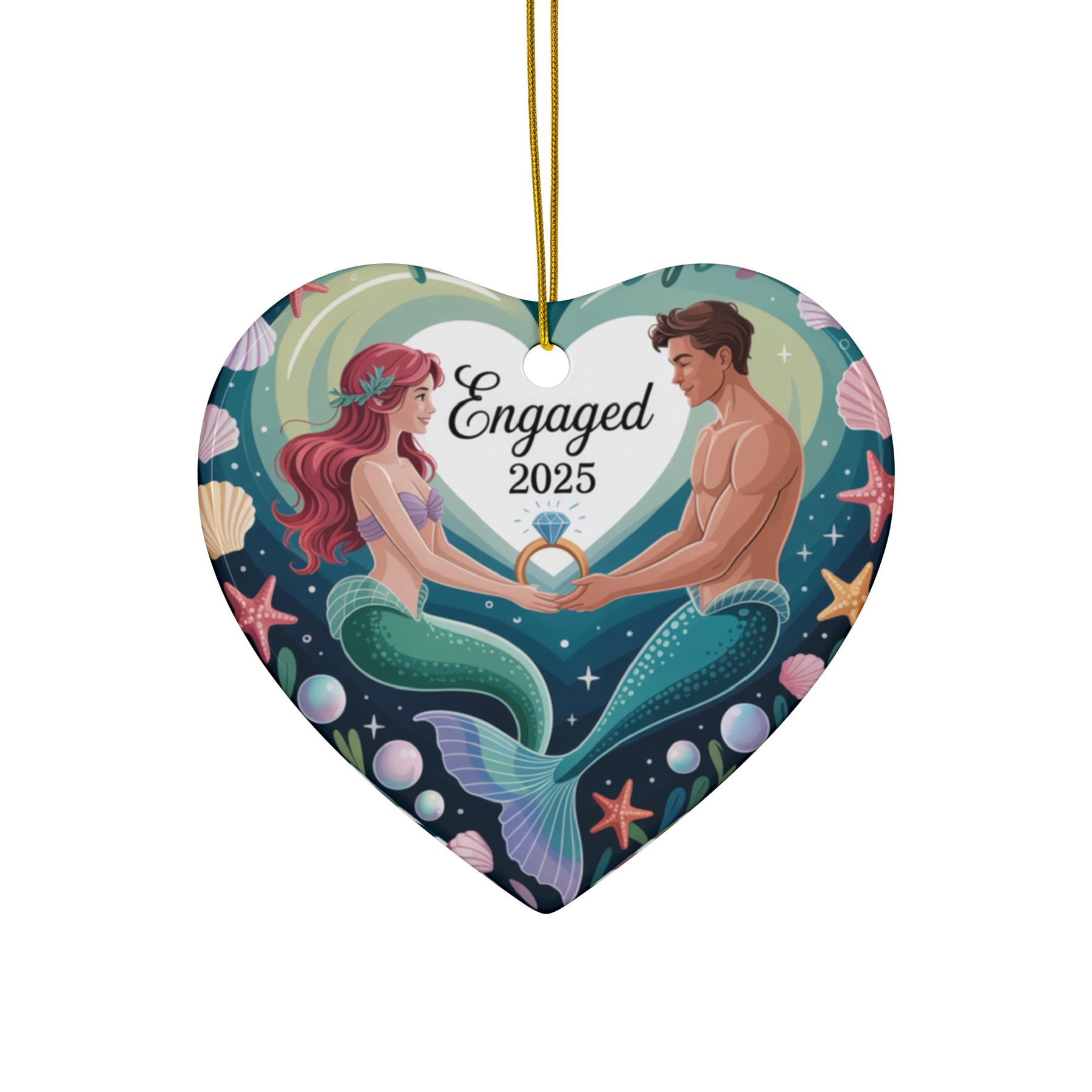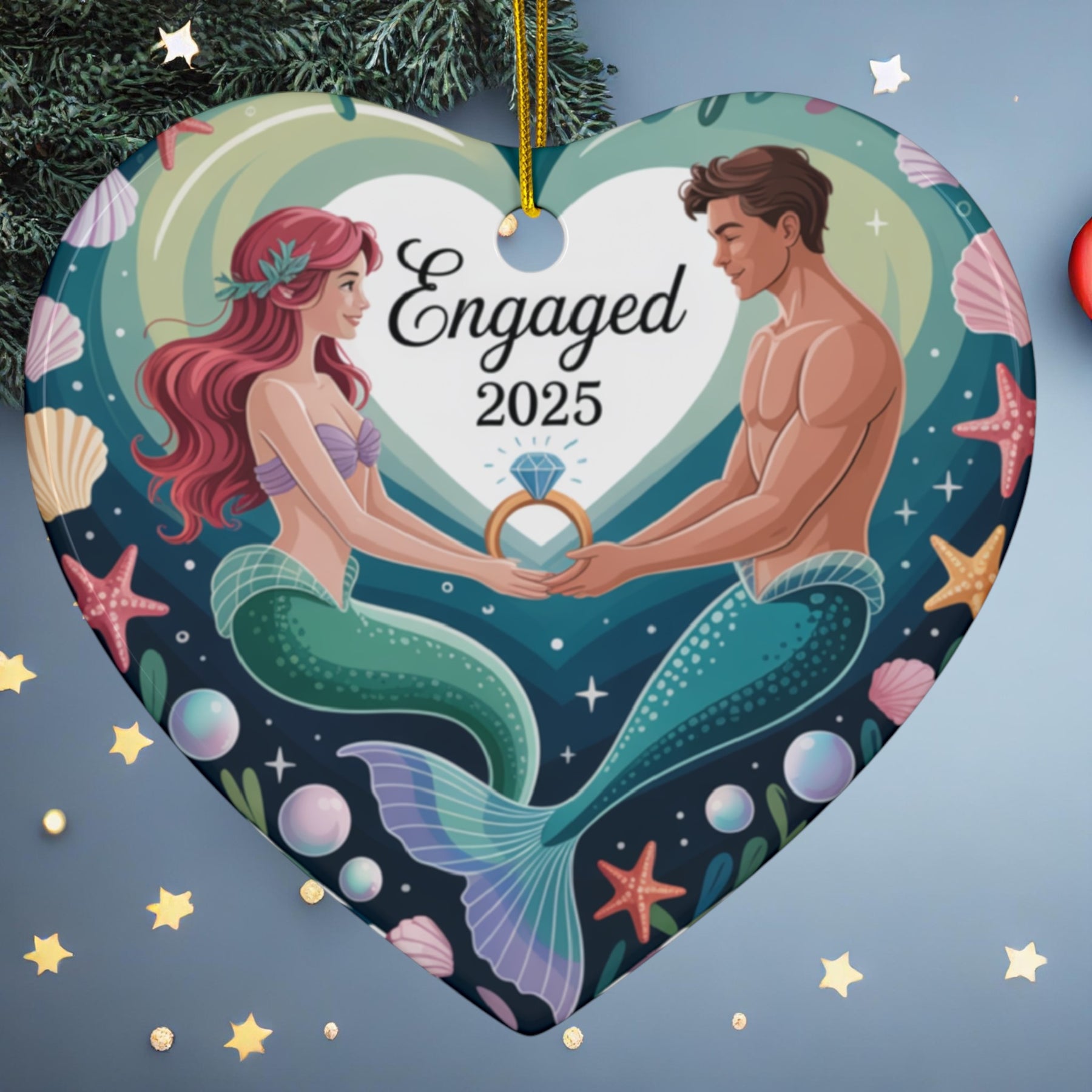Celebrate love with the Engaged 2025 Mermaid and Merman Ornament. A romantic ceramic holiday keepsake and perfect Christmas gift for couples.