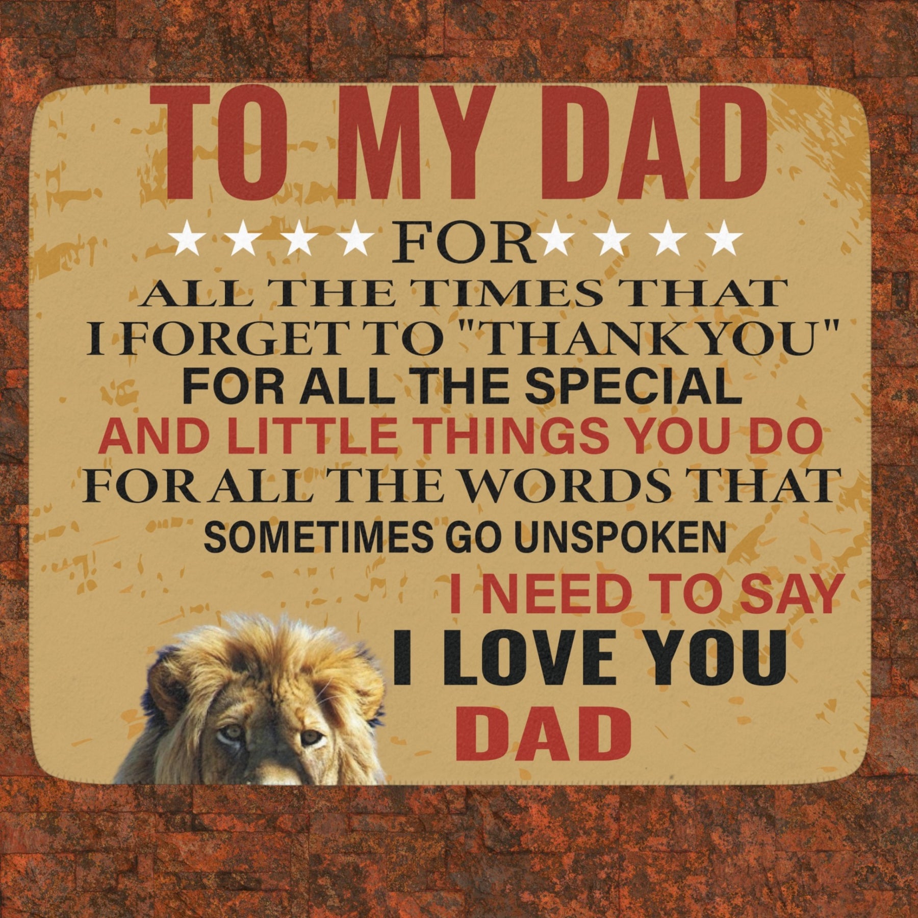 Stay warm and cozy with this Tan Sherpa Blanket featuring a special 'Love To My Dad' design. Perfect for snuggling on the couch or adding a sentimental touch to your home decor. Ideal gift for Father's Day, dad's birthday, or just to show appreciation to a special father figure in your life.