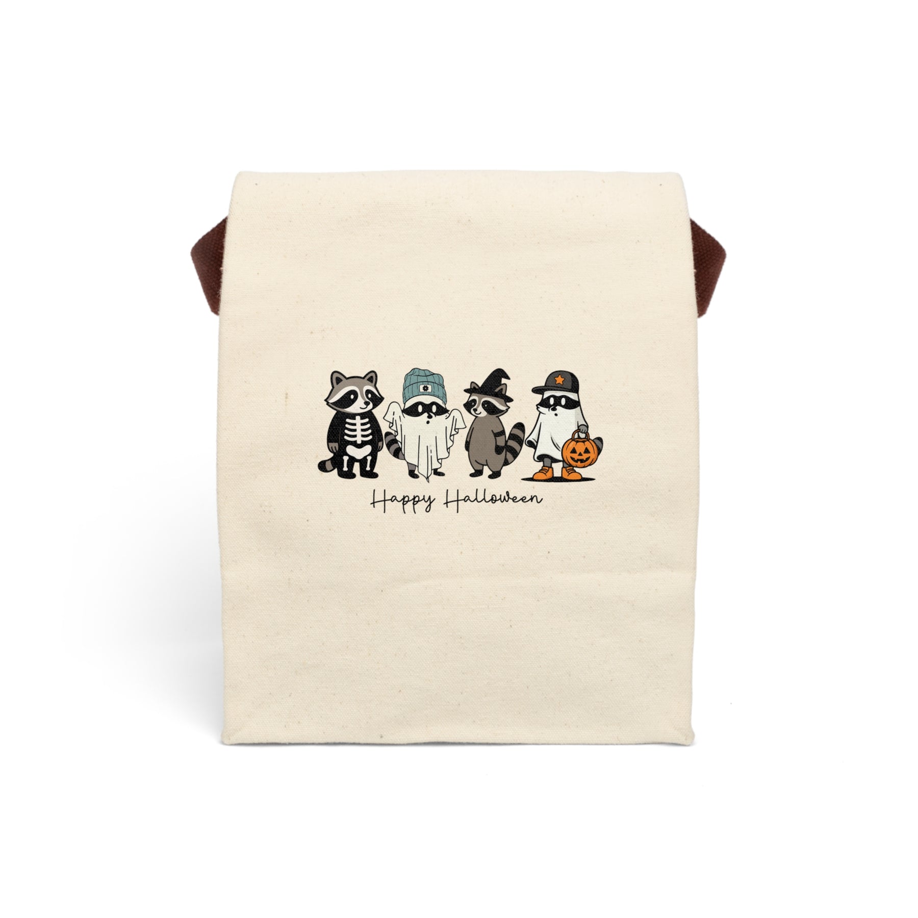 This Halloween Canvas Lunch Bag With Strap is perfect for carrying your snacks or lunch to school, work, or a picnic. The cute trick-or-treat design gives off a fun and festive vibe, ideal for Halloween celebrations. Made from durable 100% natural cotton canvas, this lunch tote showcases vibrant colors with the latest printing techniques. It features a convenient strap handle and a roll closure with a hook + loop tape for easy access.