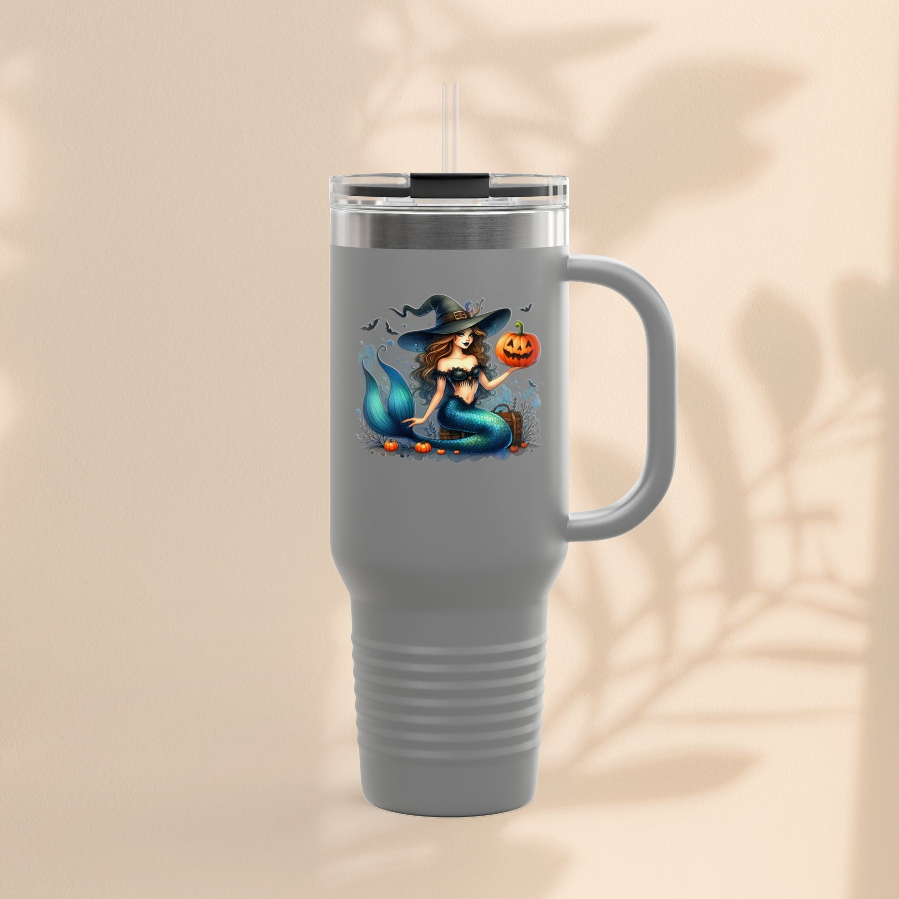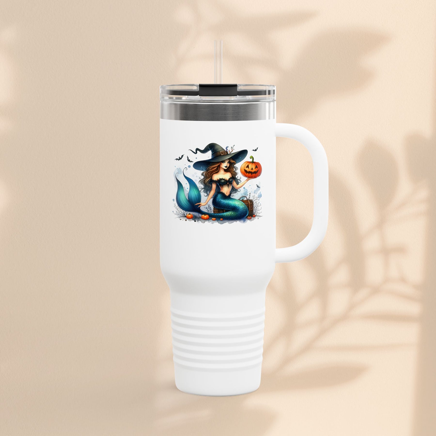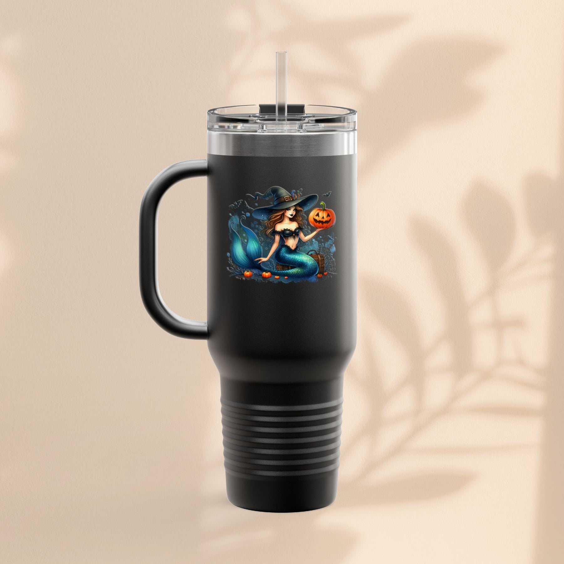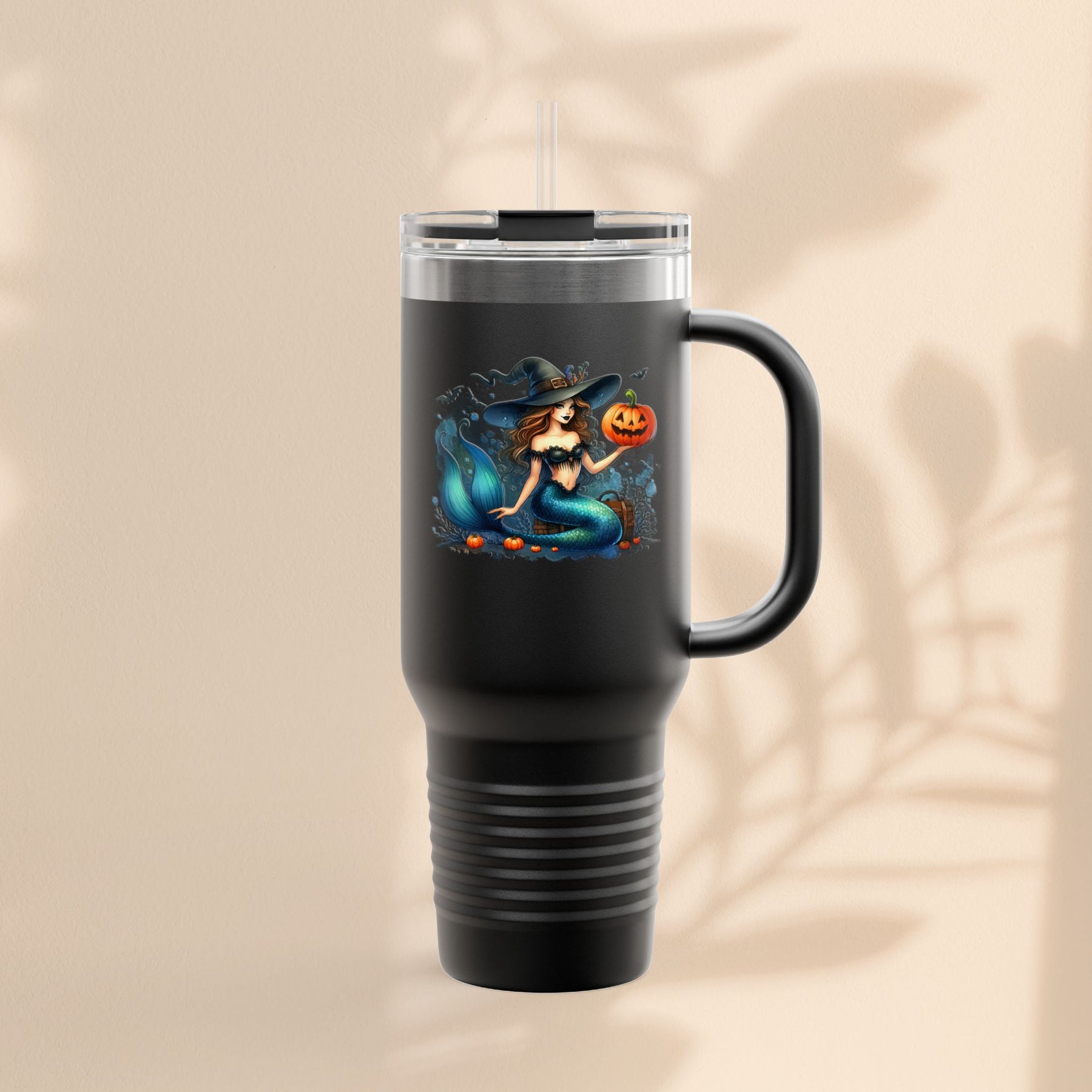 Mermaid & Pumpkin Halloween Travel Mug – 40oz Insulated Tumbler for Gifts & Parties