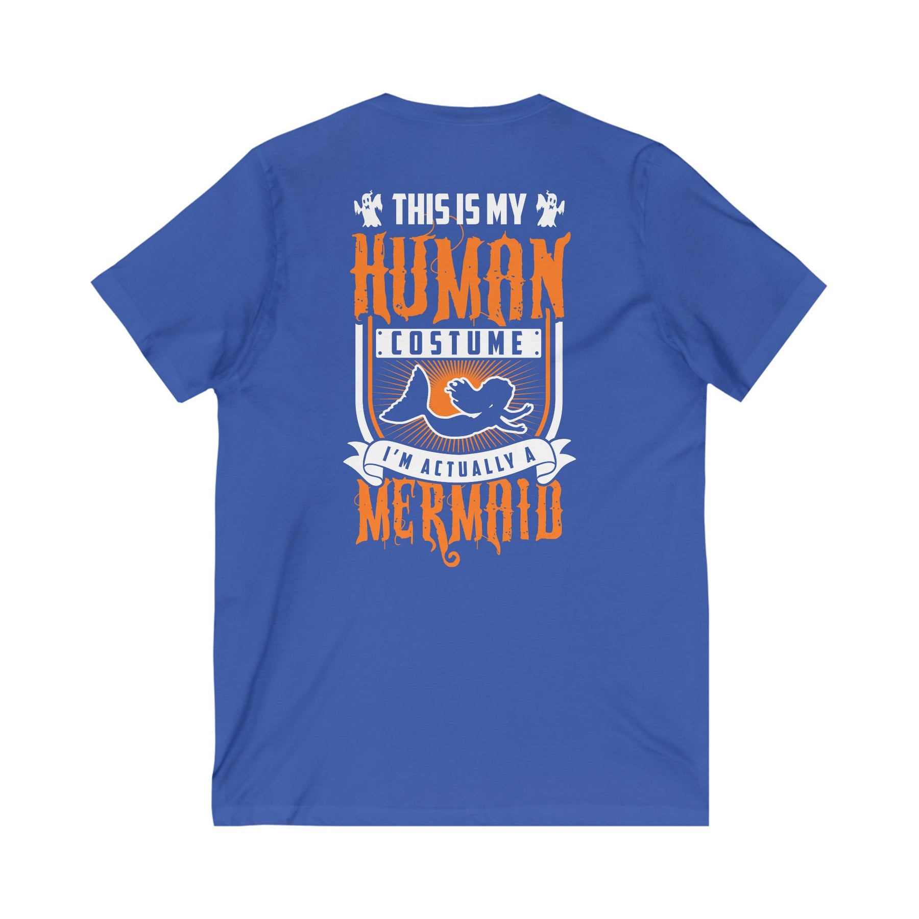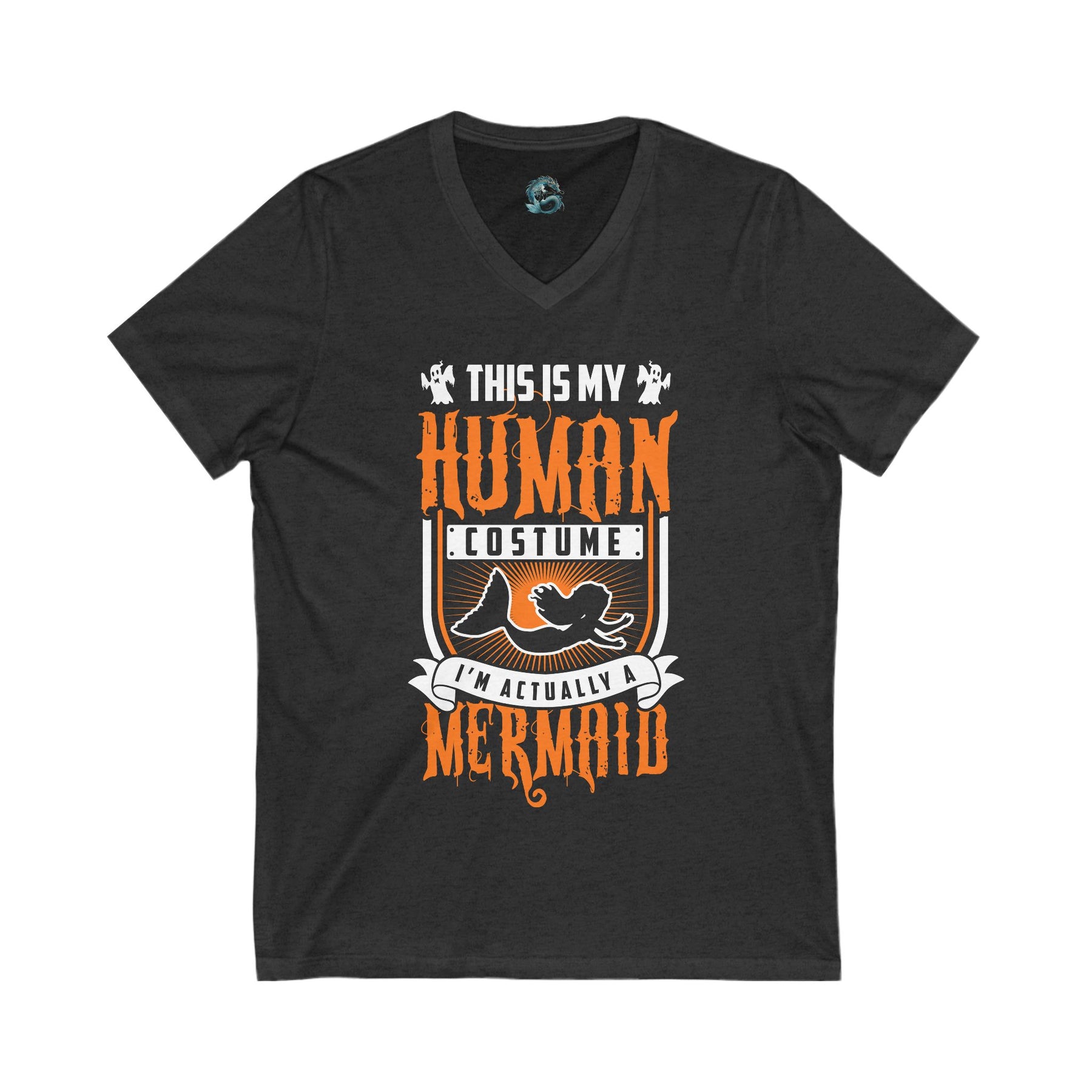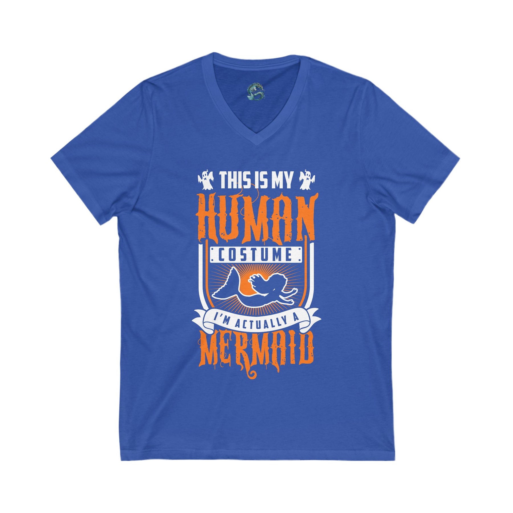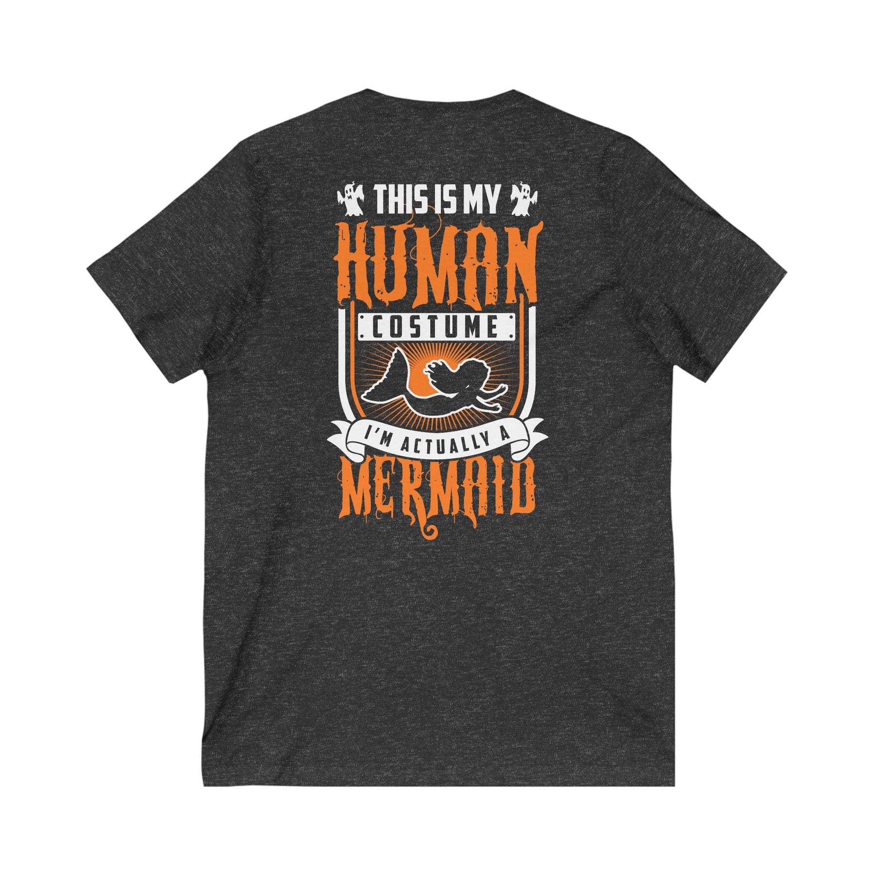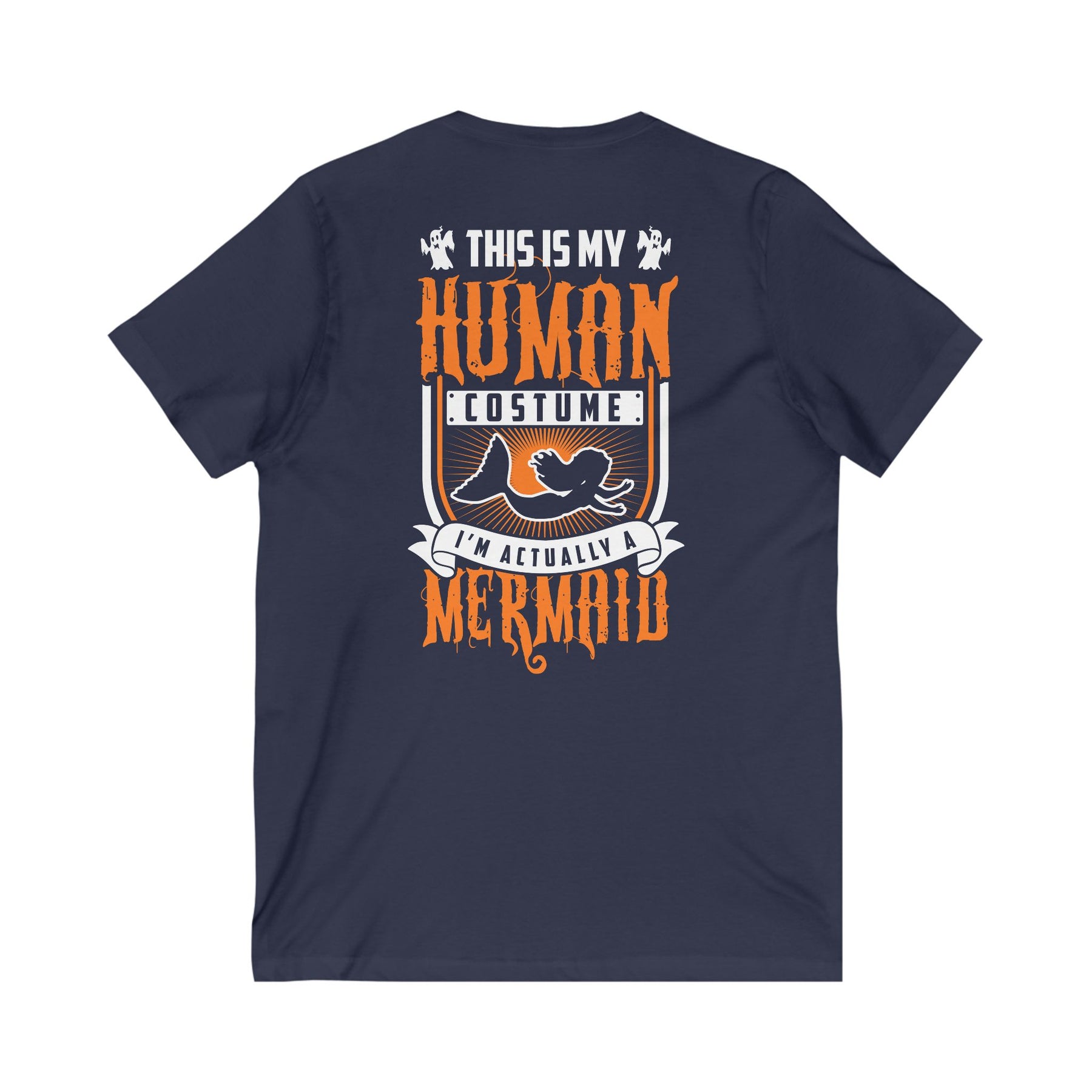 Unisex V-Neck Tee – Human Mermaid Graphic Shirt for Beach & Summer Casual Wear