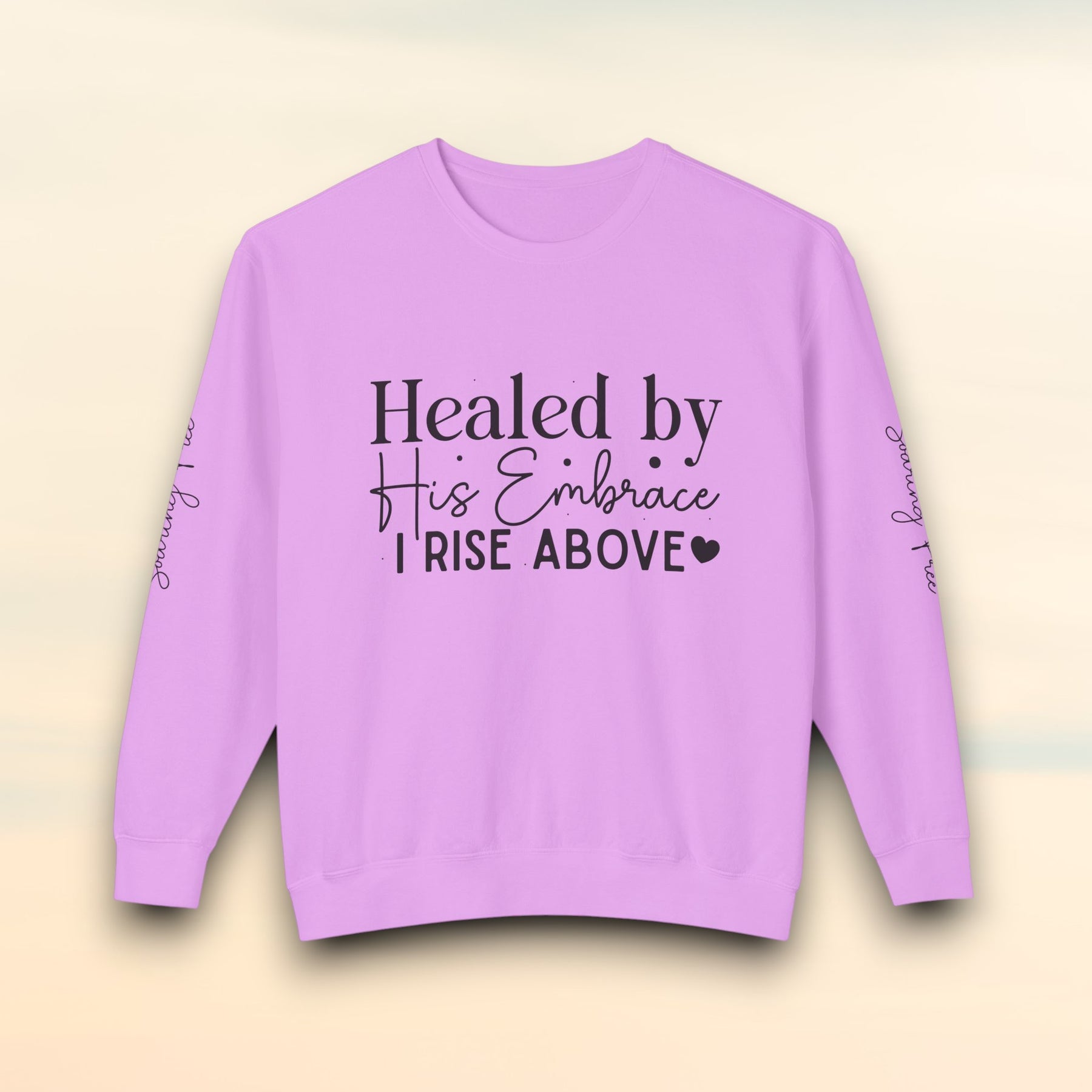 The Unisex Lightweight Crewneck Sweatshirt - Healed By His Embrace. I Soar. by Sea Dragon Dreams is a symbol of hope, resilience, and freedom. With a soft, lightweight fabric for comfortable layering, this sweatshirt wraps you in a reminder of strength and healing. The powerful message “Healed By His Embrace. I Soar.” resonates across the chest, while the sleeve’s detail—“Soaring Free”—adds an extra touch of inspiration. Ideal for those on a journey of recovery, faith, or personal growth, this sweatshirt is a comforting embrace you can wear, empowering you to rise above life’s challenges.