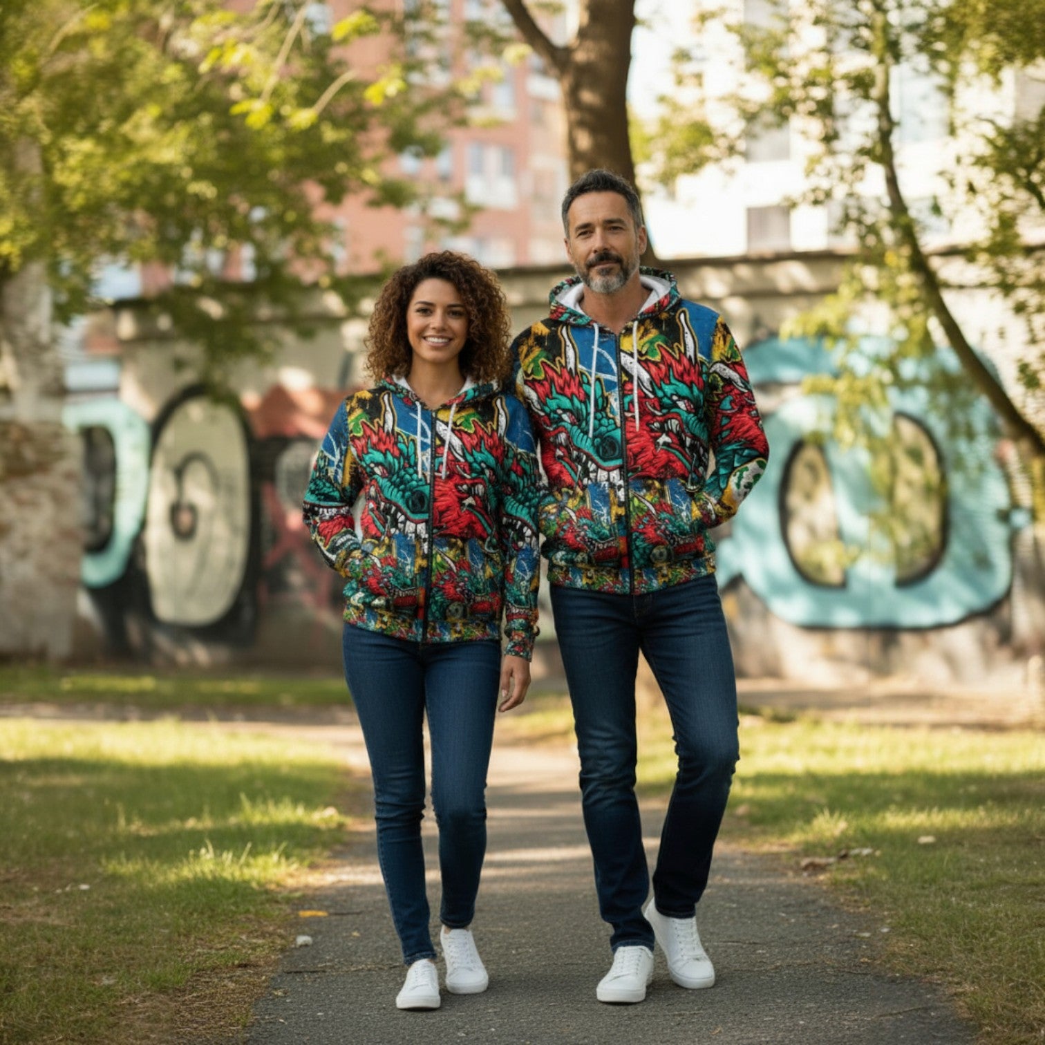 Slip into mythic comfort. The Street Dragon full-zip pairs downtown streetwear with Sea-born energy—soft fleece inside, smooth exterior, and artwork that moves with you.
