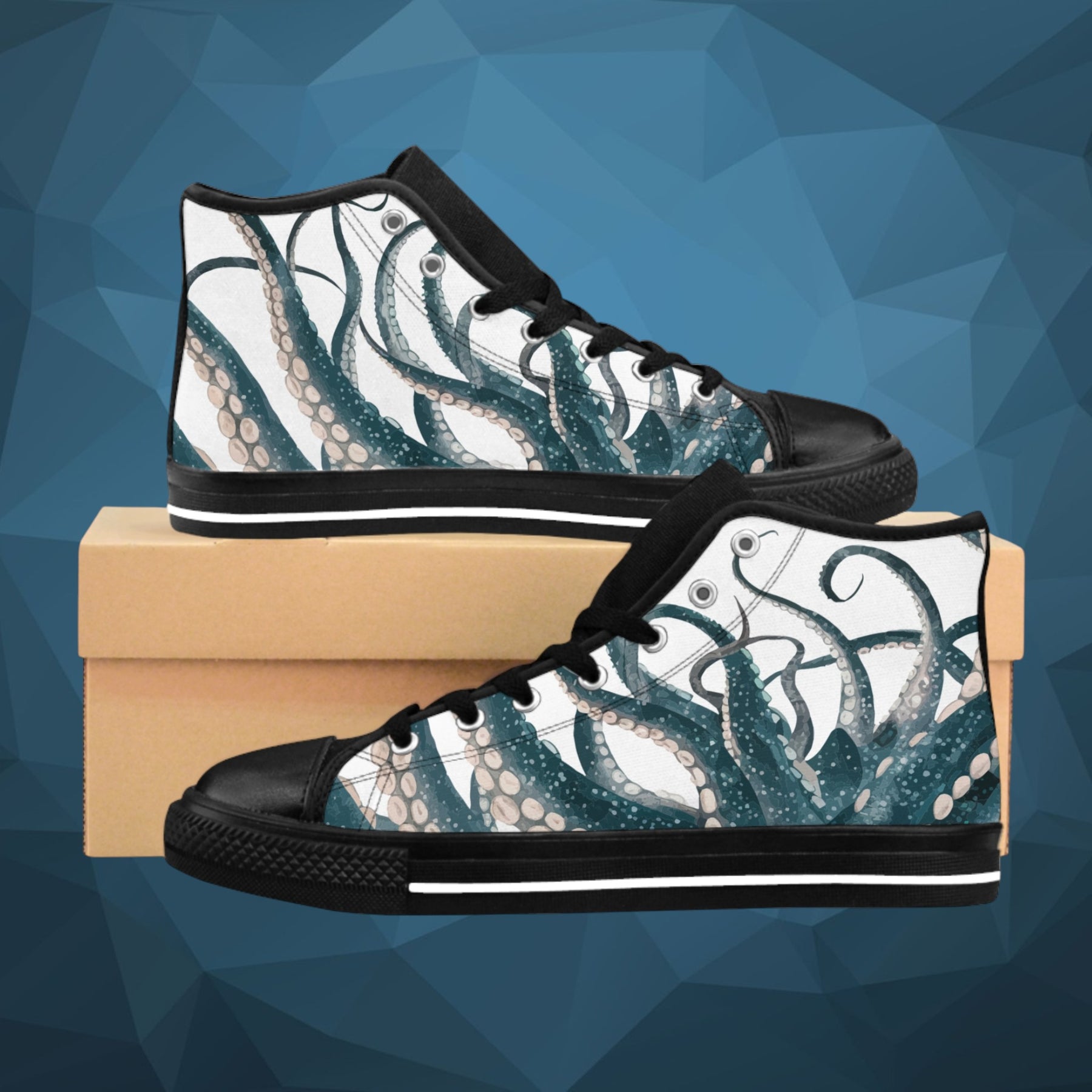 Step into bold, ocean-inspired style with the **Men's Classic Sneakers - Downward Octopus**! Featuring a striking octopus design, these sneakers combine unique artistry with everyday functionality. Crafted with a durable canvas upper and a cushioned sole, they offer all-day comfort and support for casual outings, adventures, or making a statement wherever you go. The classic silhouette ensures a versatile fit, while the eye-catching design adds a touch of marine magic to your wardrobe. Perfect for ocean lovers and trendsetters alike, the **Downward Octopus Sneakers** are a must-have for your collection. Order yours today and make waves with every step!