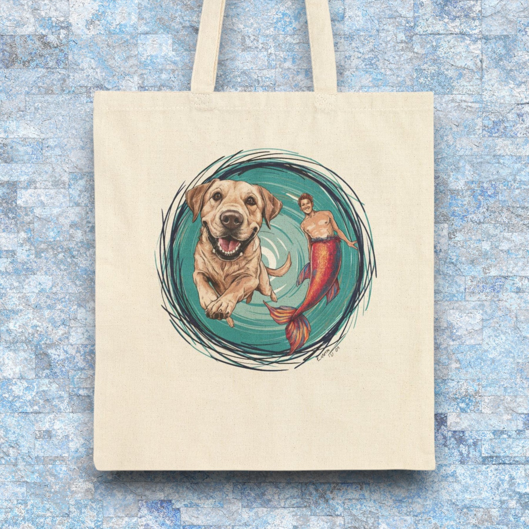 Celebrate the bond between man and his best friend with our Cotton Canvas Tote Bag - Merman and His Dog! This 100% durable cotton tote showcases a whimsical design of a merman playing with his dog, perfect for pet lovers and ocean enthusiasts alike. Measuring 15" x 16", it’s spacious enough for daily essentials, groceries, or beach gear. The sturdy 20" canvas handles make it comfortable to carry, even with heavier loads. A charming and practical accessory, this tote is ideal for errands, outings, or gifting to fellow animal lovers! 🧜♂️🐕✨