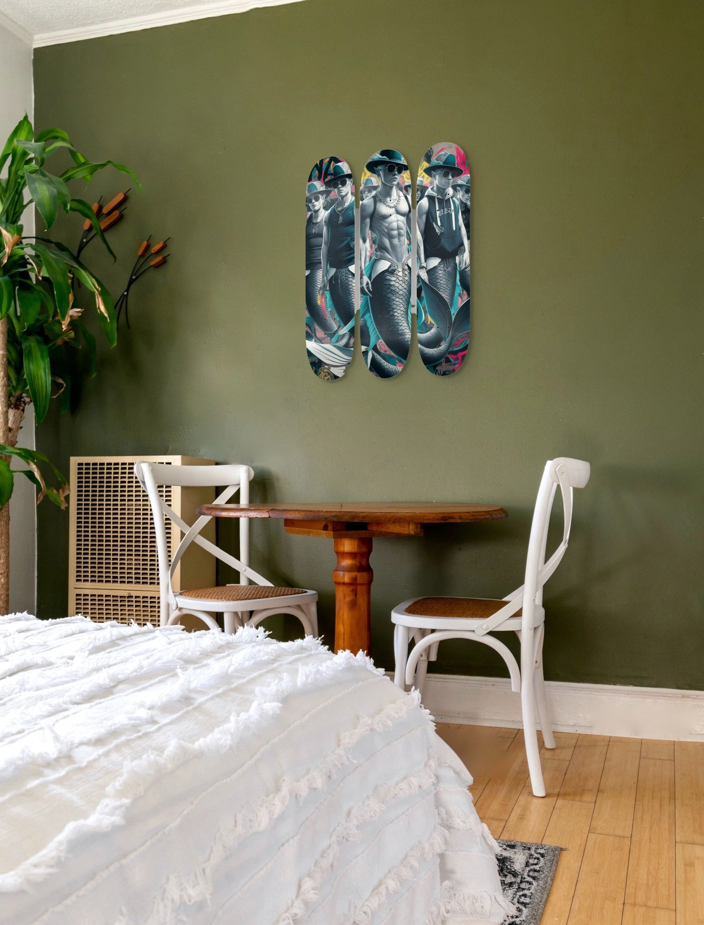 Step up your skate game with the Macho Mermen Skateboard from Sea Dragon Dreams' 3 Skateboard Series Art. This bold deck features a striking design of muscular, confident mermen in dynamic poses, exuding strength and charisma. Crafted from premium maple wood, the Macho Mermen Skateboard promises both durability and a smooth, responsive ride that matches its eye-catching aesthetic. Perfect for those who want to combine powerful style with high performance, this deck lets you ride with the swagger and confidence of the sea’s most formidable creatures. Make a splash on and off the pavement and let every ride be a testament to your bold, adventurous spirit.