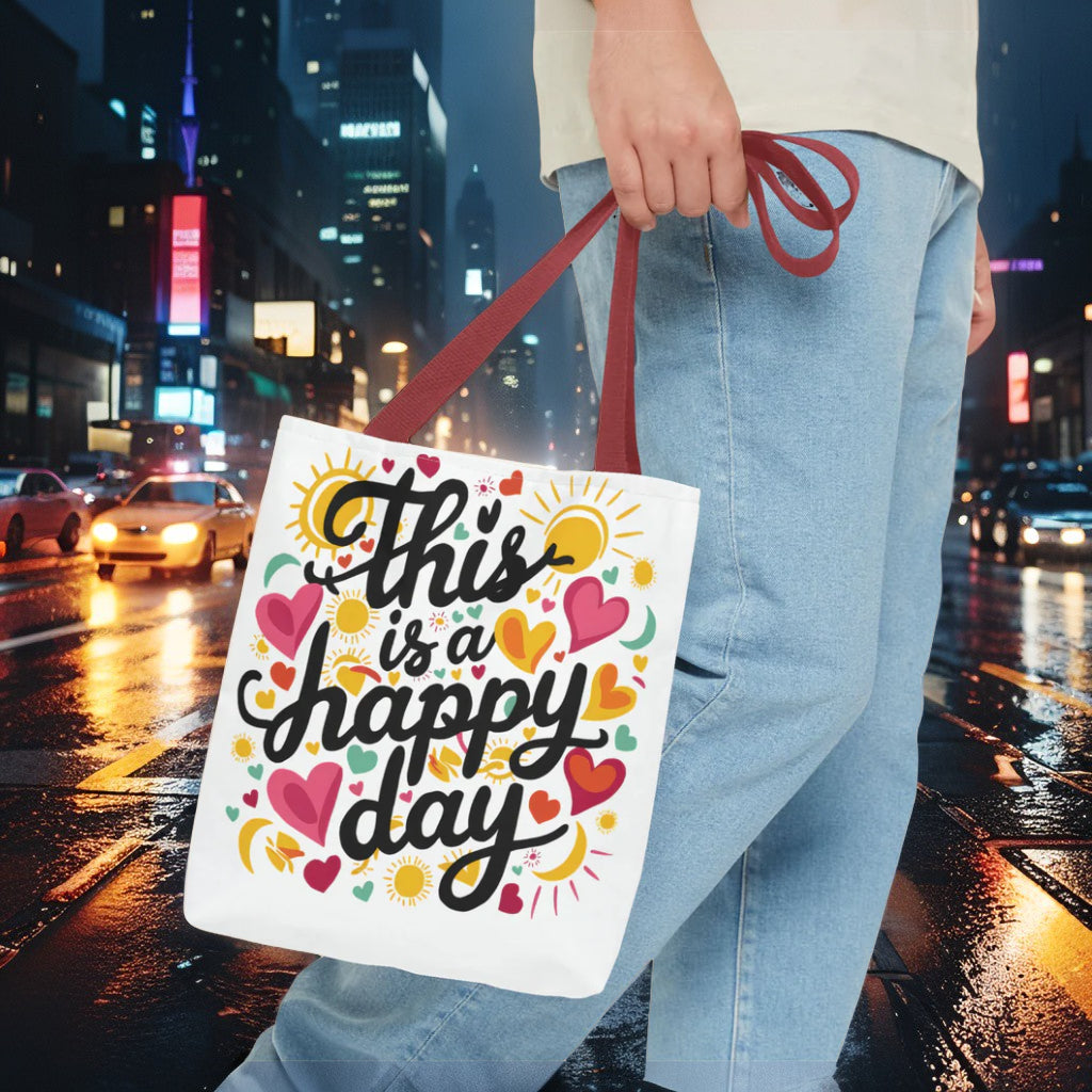 Bring joy to your daily errands with our Tote Bag - This is a Happy Day! Featuring a cheerful and uplifting design, this tote bag is perfect for shopping, outings, or carrying your essentials in style. Crafted from durable materials with spacious compartments and sturdy handles, it’s as practical as it is inspiring. Whether you’re treating yourself or giving it as a thoughtful gift, this tote is a bright reminder to embrace the happiness in every day. 😊✨