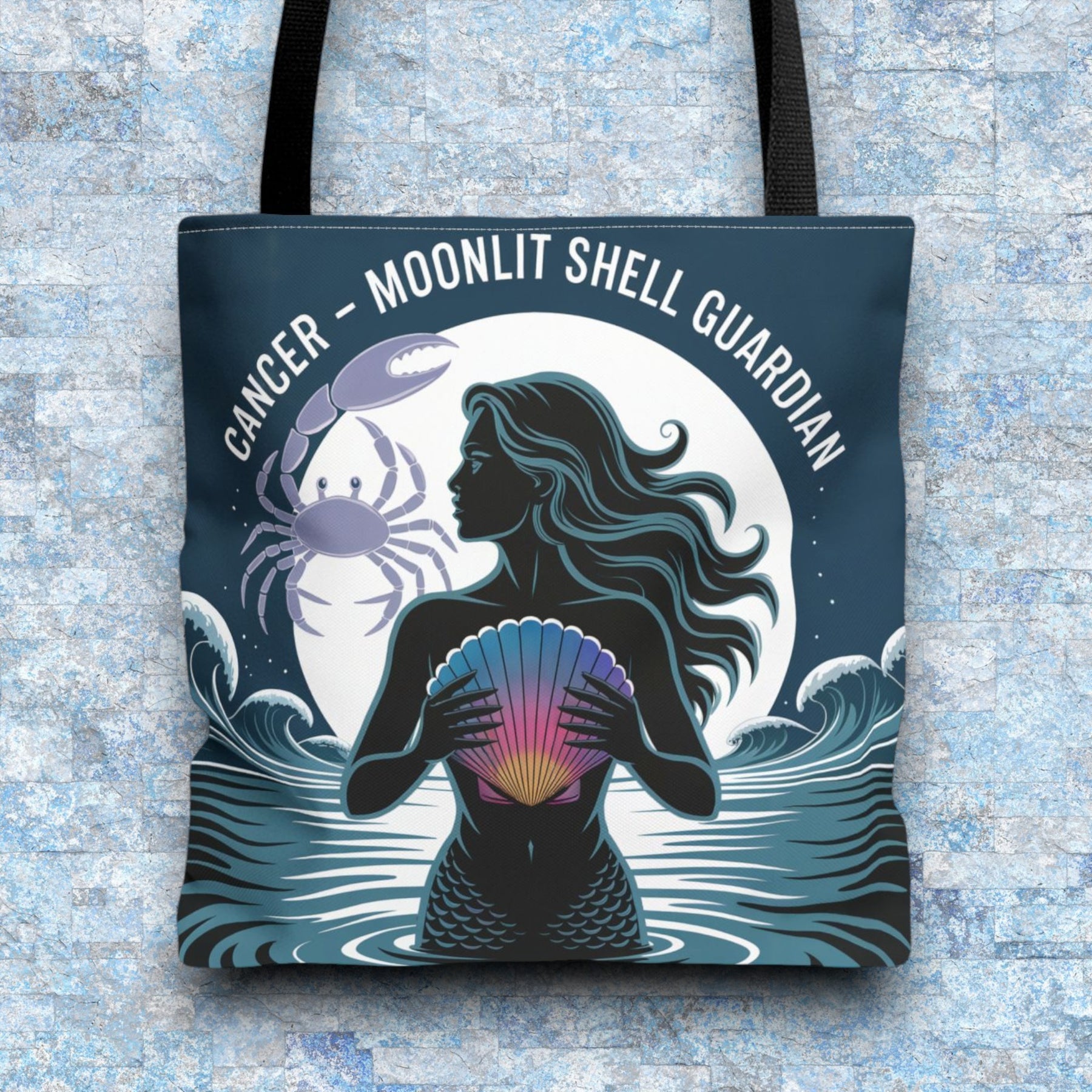 The Zodiac Cancer Tote channels the nurturing, intuitive energy of Cancer through a dreamy, water-inspired design. Perfect for moon children and ocean souls, this tote is a soft yet powerful companion for everyday errands and magical moments.