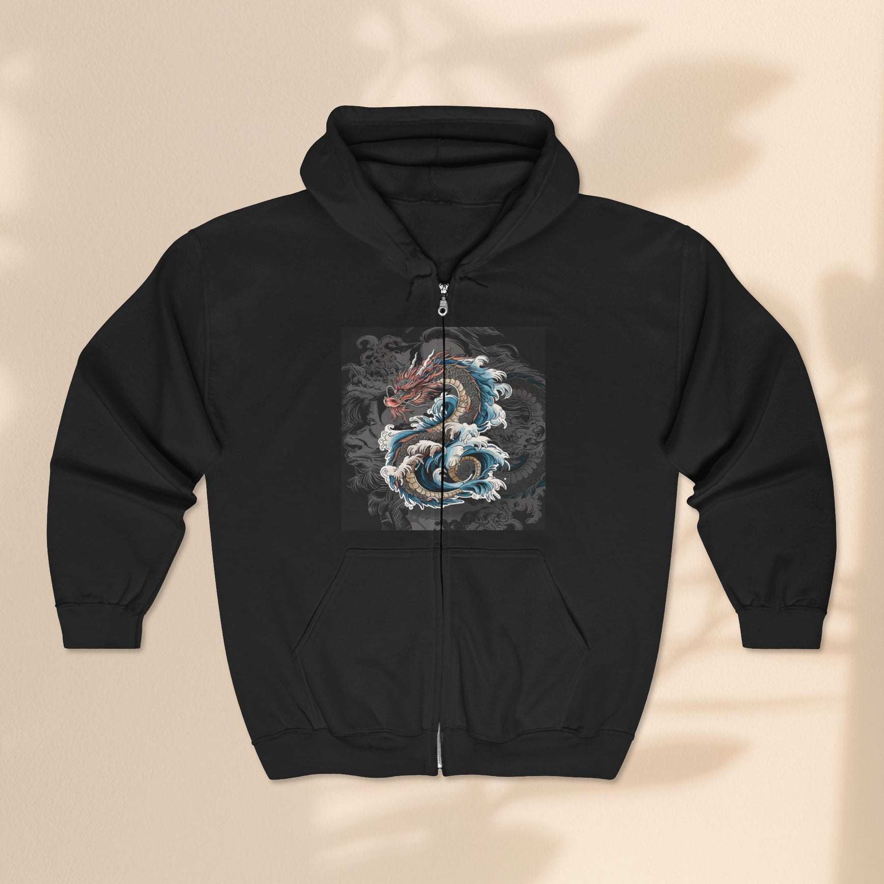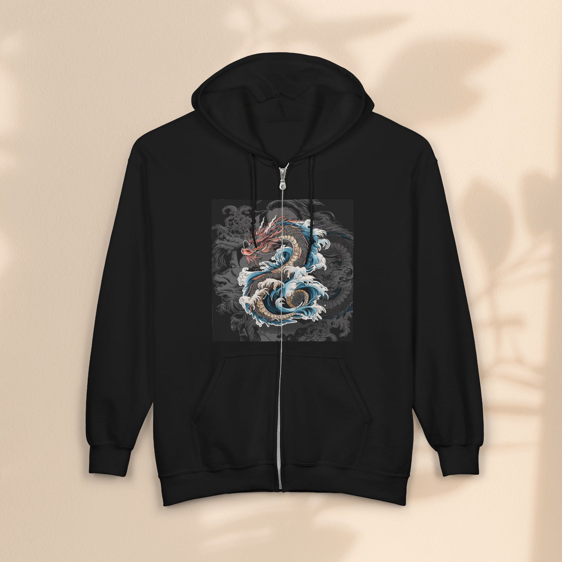 Dragon Wave Zip Hoodie - Unisex Heavy Blend Zip Up