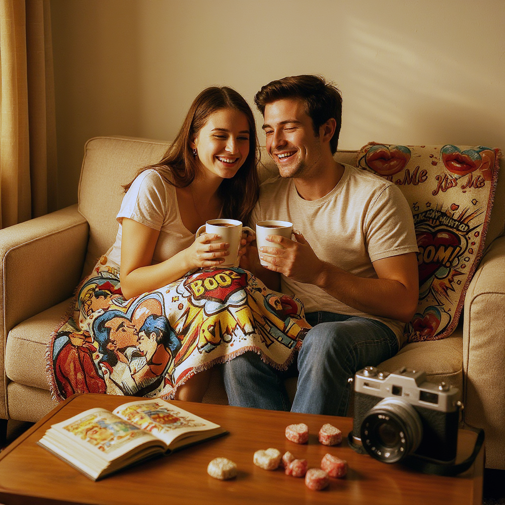 Cozy up with this Woven Blanket featuring a romantic 'Kiss Me' design. Perfect for adding a touch of love to your living room or bedroom decor. Ideal for couples, romantics, and those celebrating Valentine's Day or anniversaries.