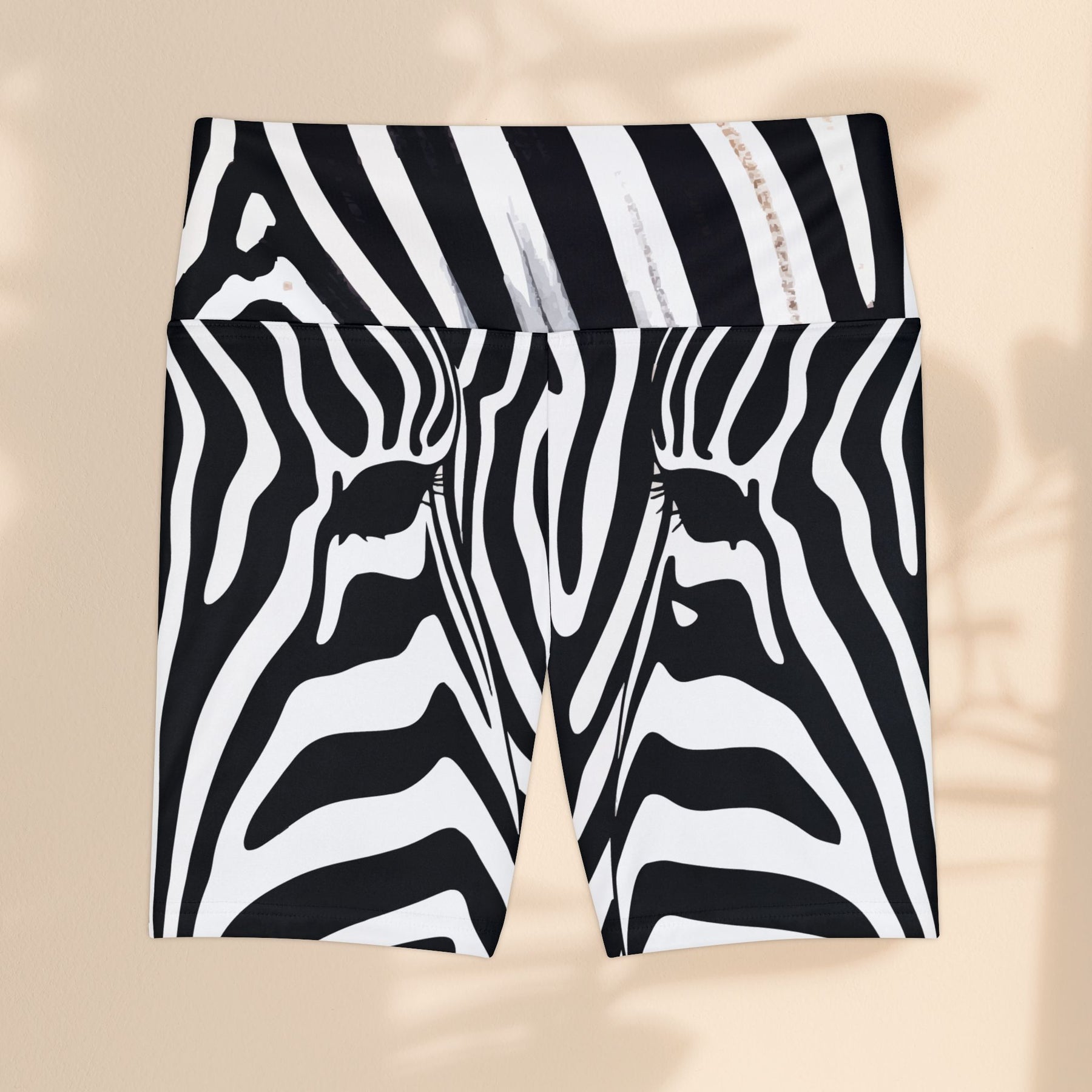 These black-and-white zebra print workout shorts bring motion and confidence to every rep, run, and stretch. The bold stripes feel modern and unapologetic—like a track through the city at dawn. Lightweight yet substantial, they move with you thanks to the gusset insert and a fabric that breathes and dries fast. The waistband keeps things smooth and tidy with printed size and care info tucked inside. Wear them for sprints, studio classes, or low-light evening walks; they blend functional performance with a statement-making pattern that complements a focused, active life.