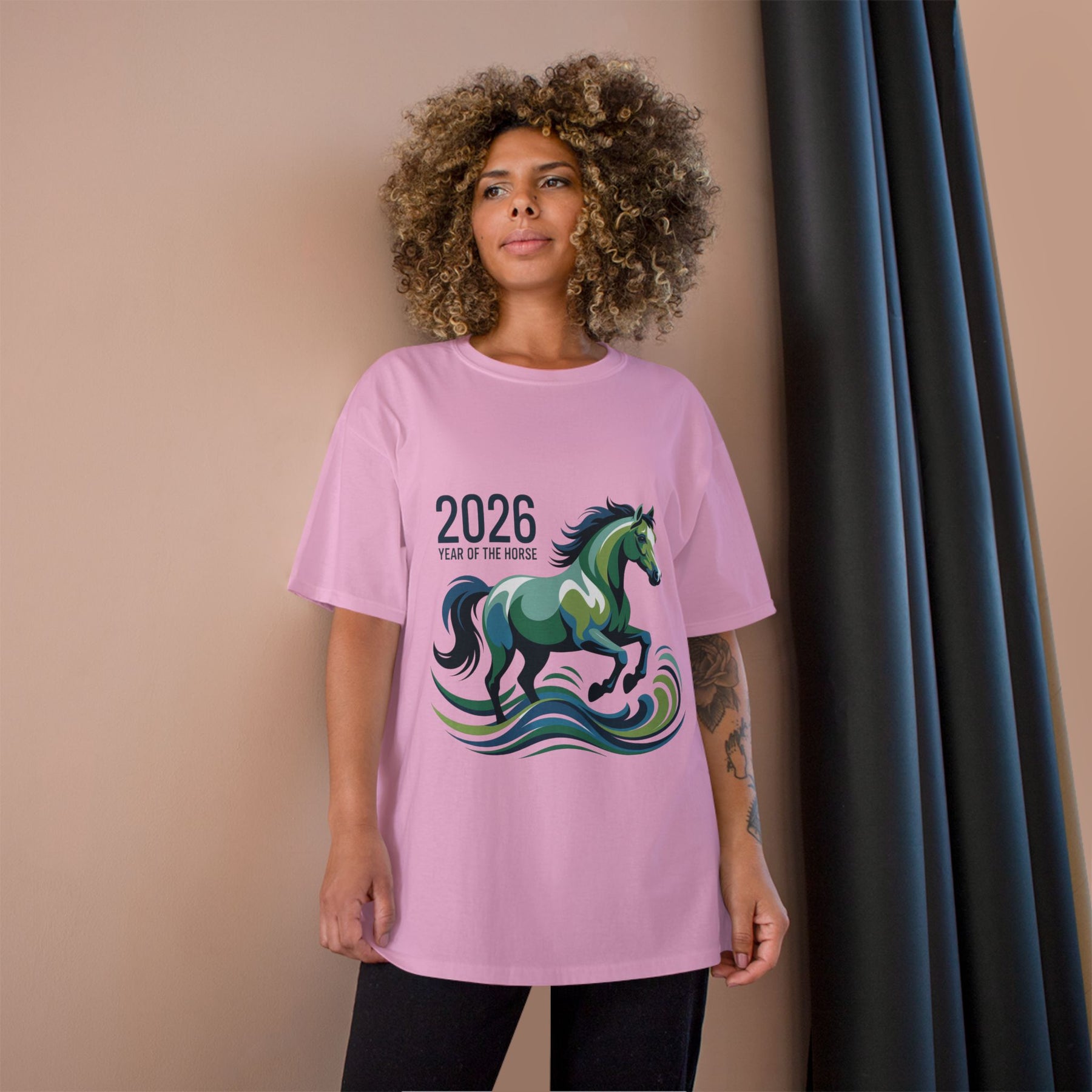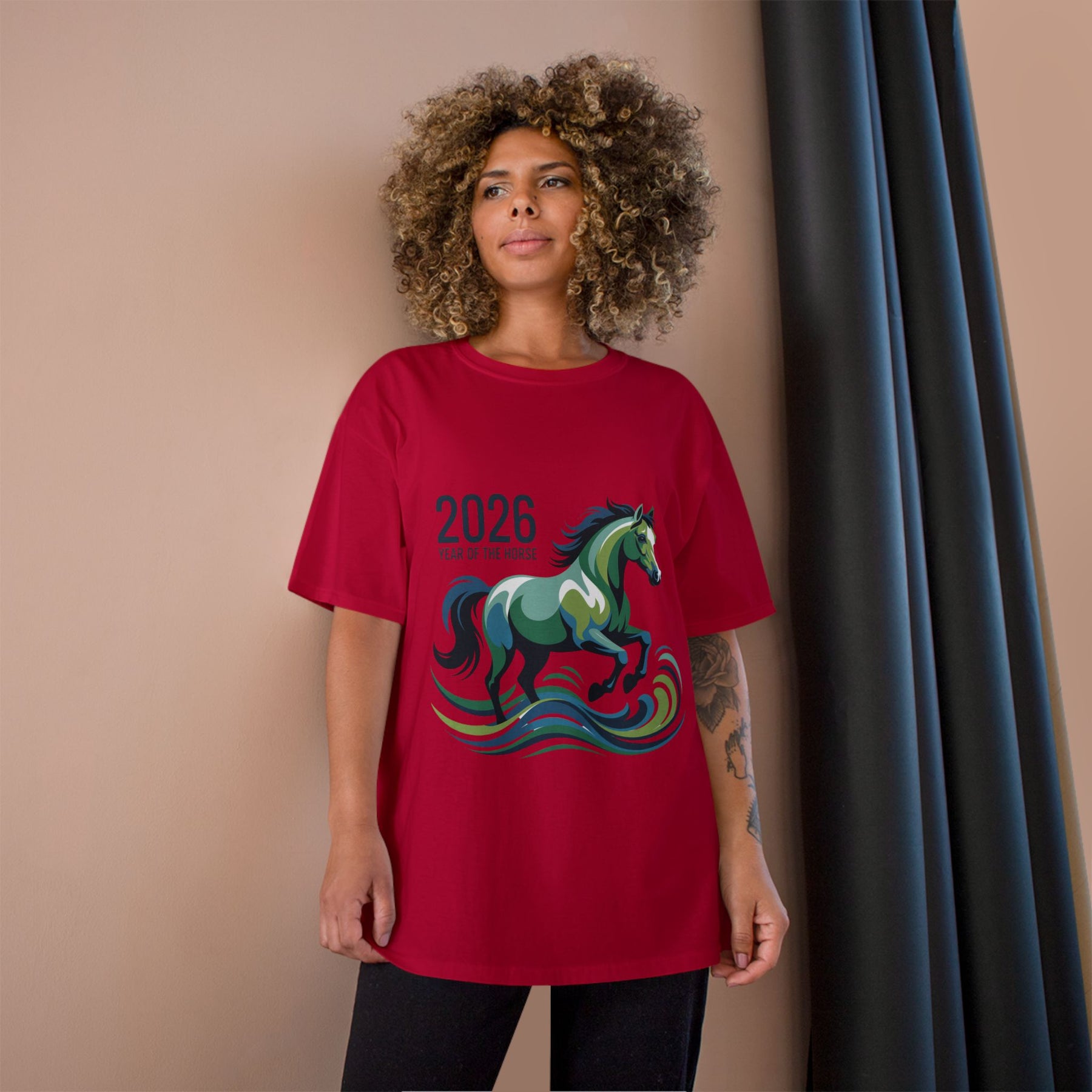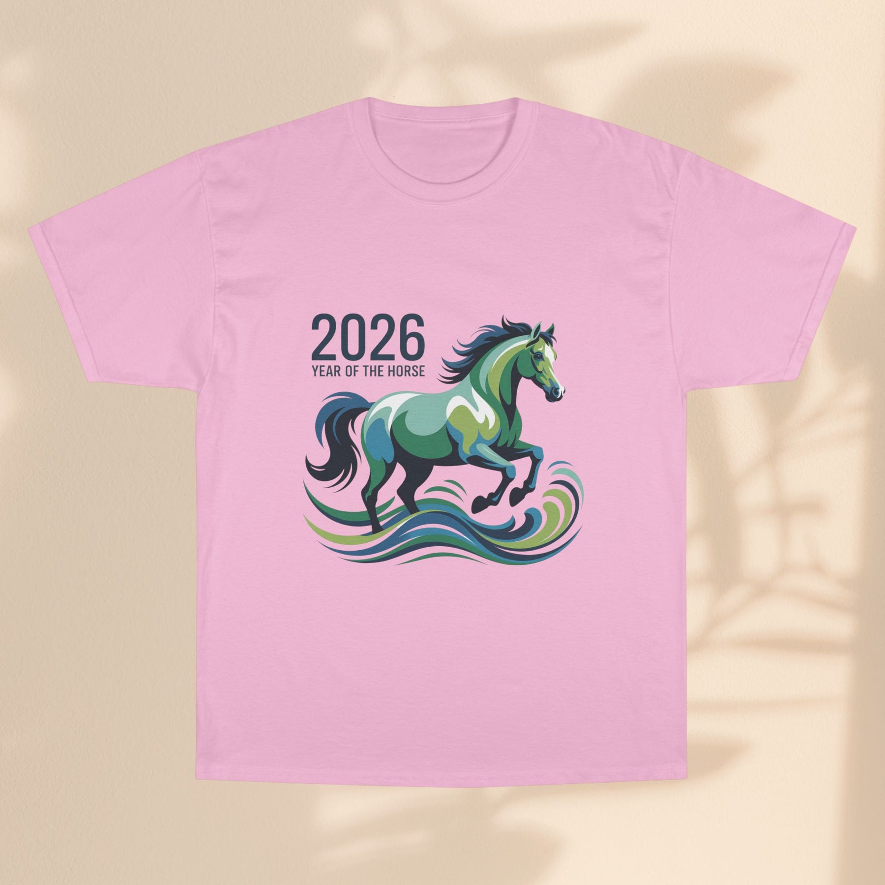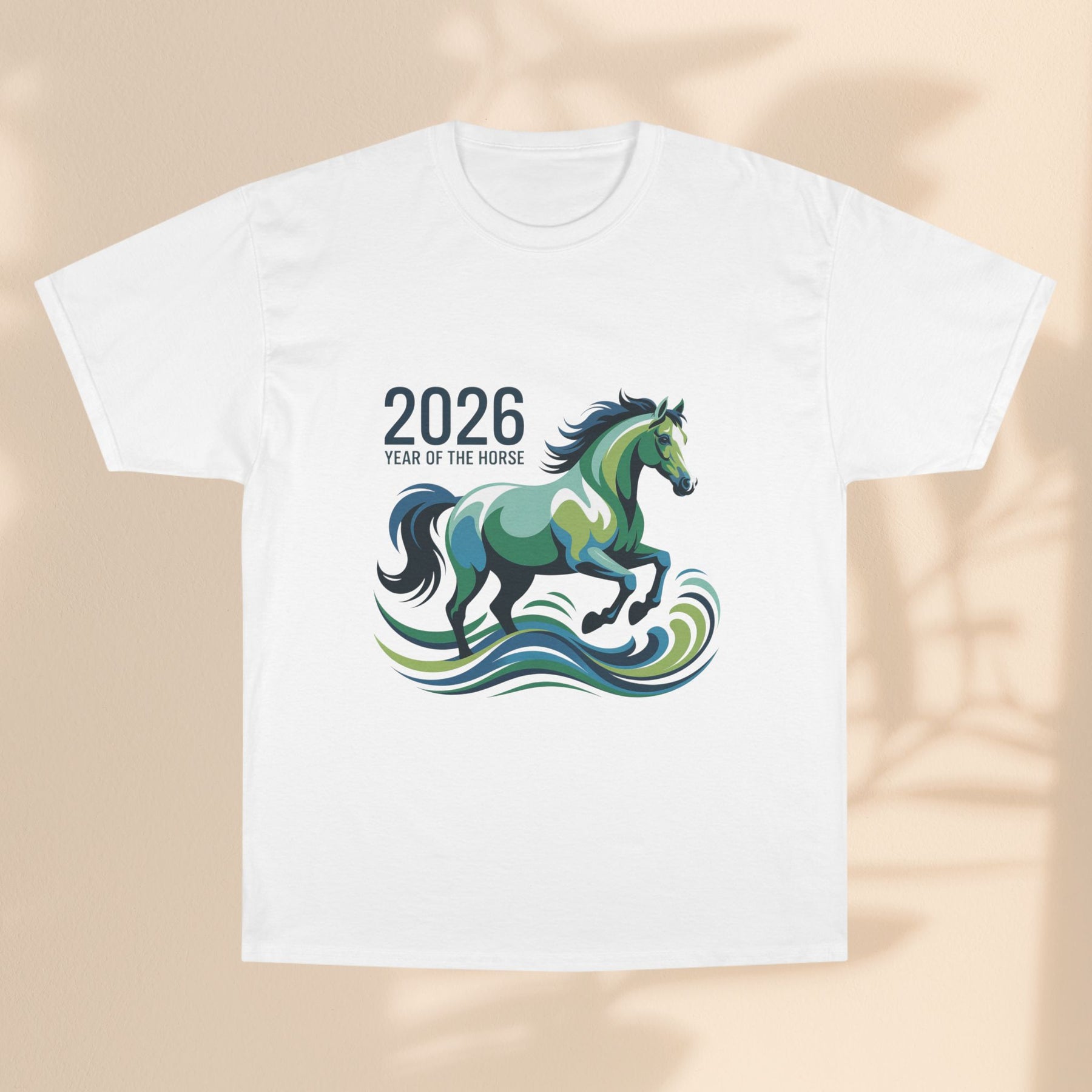 Wear the Year of the Horse with quiet confidence. This classic tee features a bold running-horse graphic that feels alive—mane and muscles captured in motion—so you can carry that restless, forward-pushing energy into crowded streets or calm weekends. The medium-weight cotton has enough heft to hold the print clearly, while the tag-free neck and reinforced shoulder tape keep it comfortable through long days and repeat wears. It sits true to a classic fit: not tight, not boxy. Slip it on before a casual meet-up, a lunar new year celebration, or a creative session where you need a little momentum. The understated “C” logo on the sleeve and clean tubular knit give it a simple, durable look that ages well.