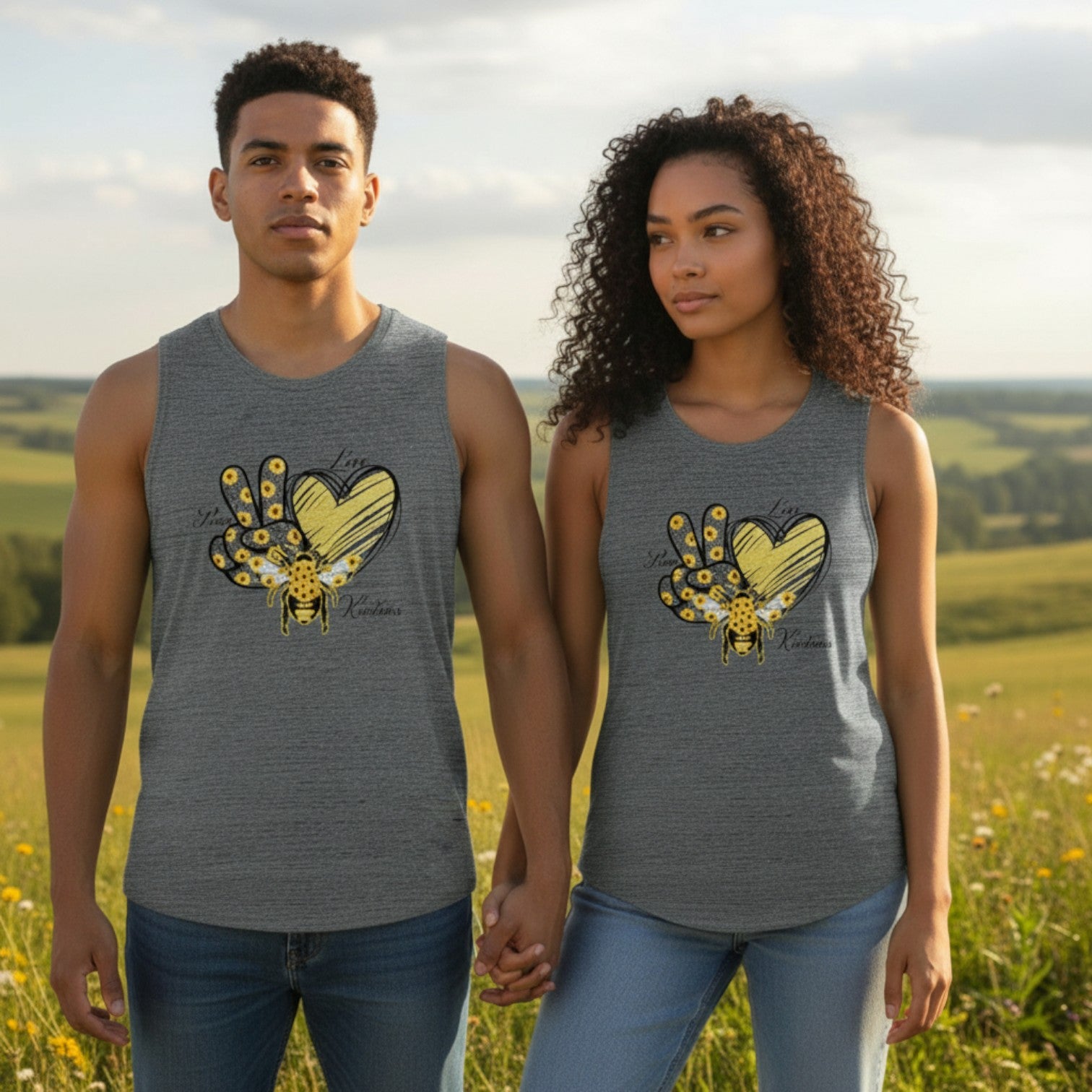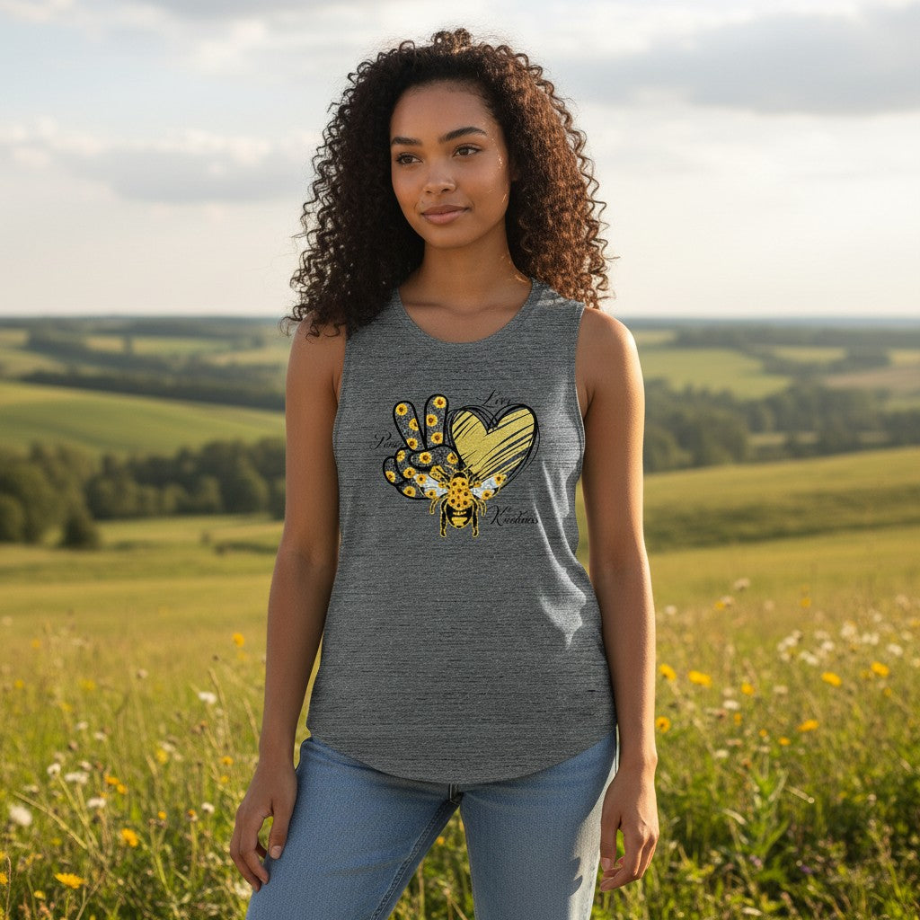 Women's Flowy Scoop Muscle Tank - Peace, Love, Bee