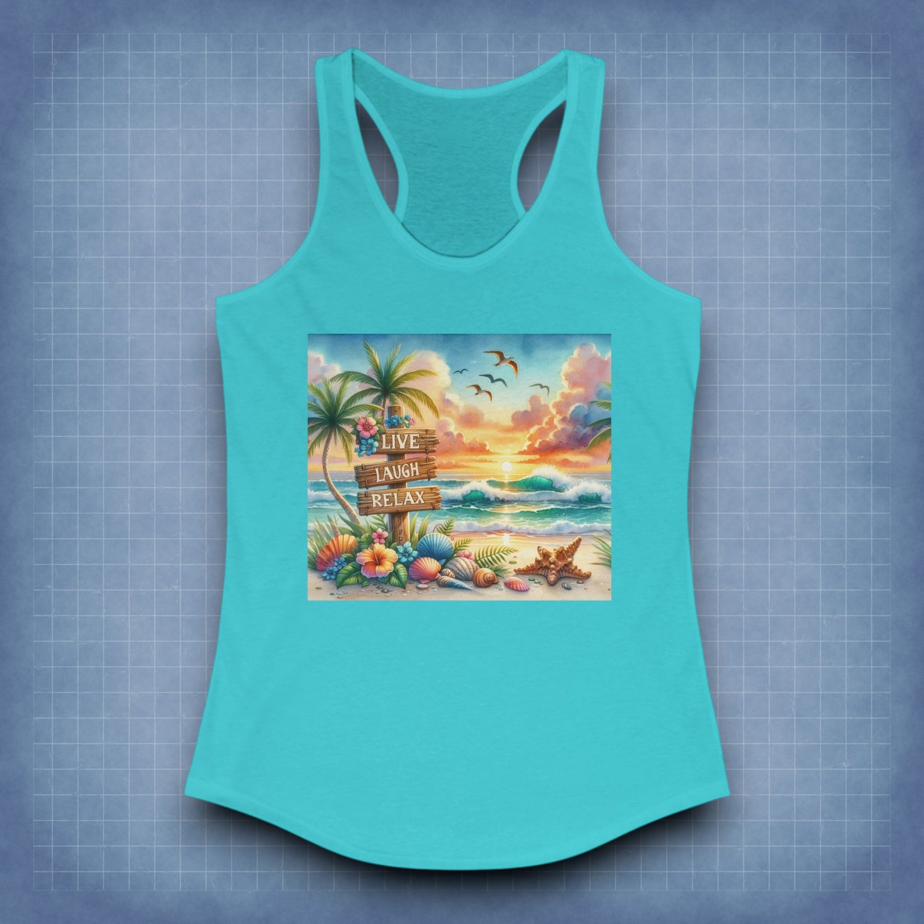 Turn heads with the Women's Ideal Racerback Tank – Live, Laugh, Relax from Sea Dragon Dreams. This slim-fit tank features a high-quality print and a flattering racerback cut, perfect for highlighting your shoulders. Whether for casual wear or active days, this tank blends comfort and style, making it a must-have for those who embrace a laid-back yet fashionable lifestyle.