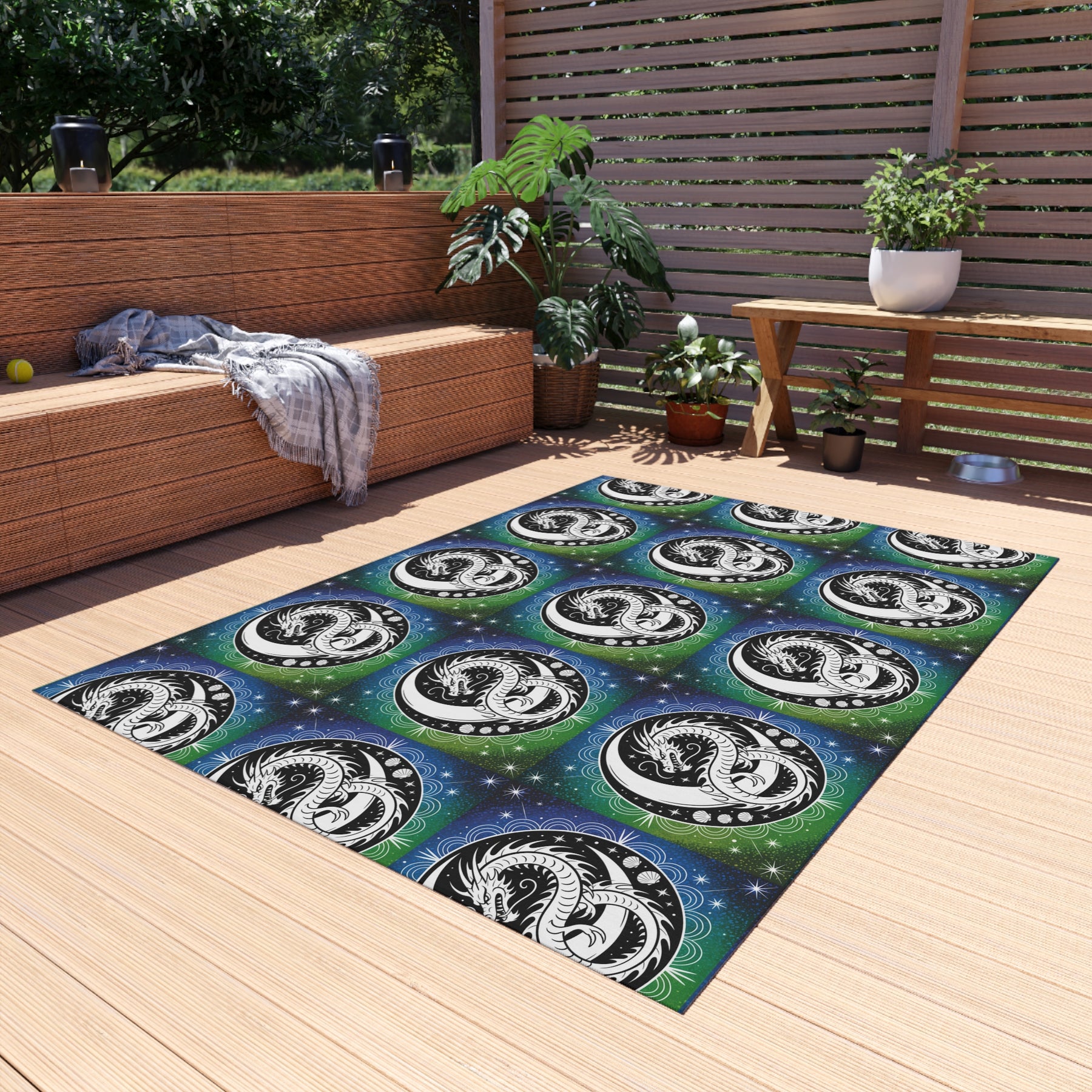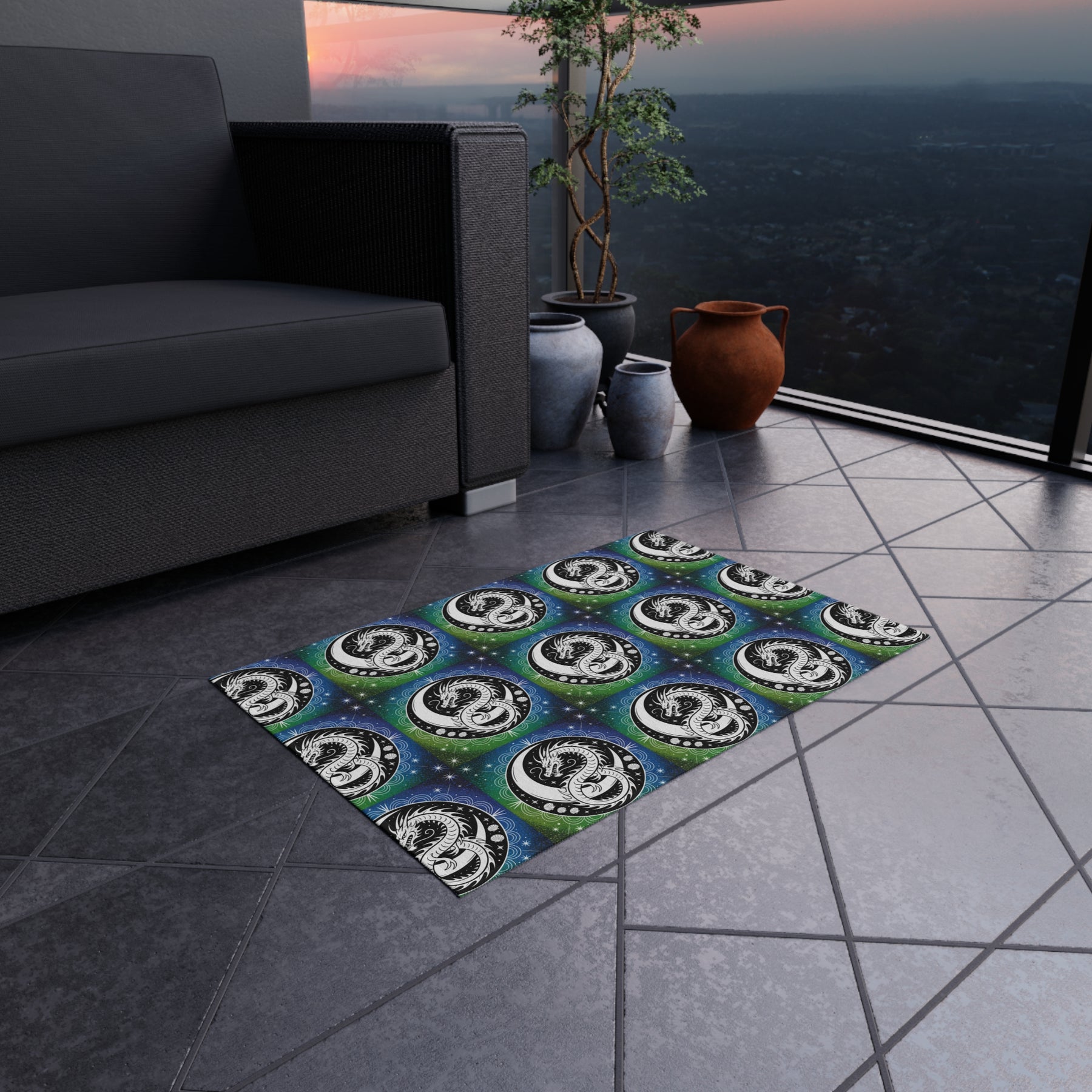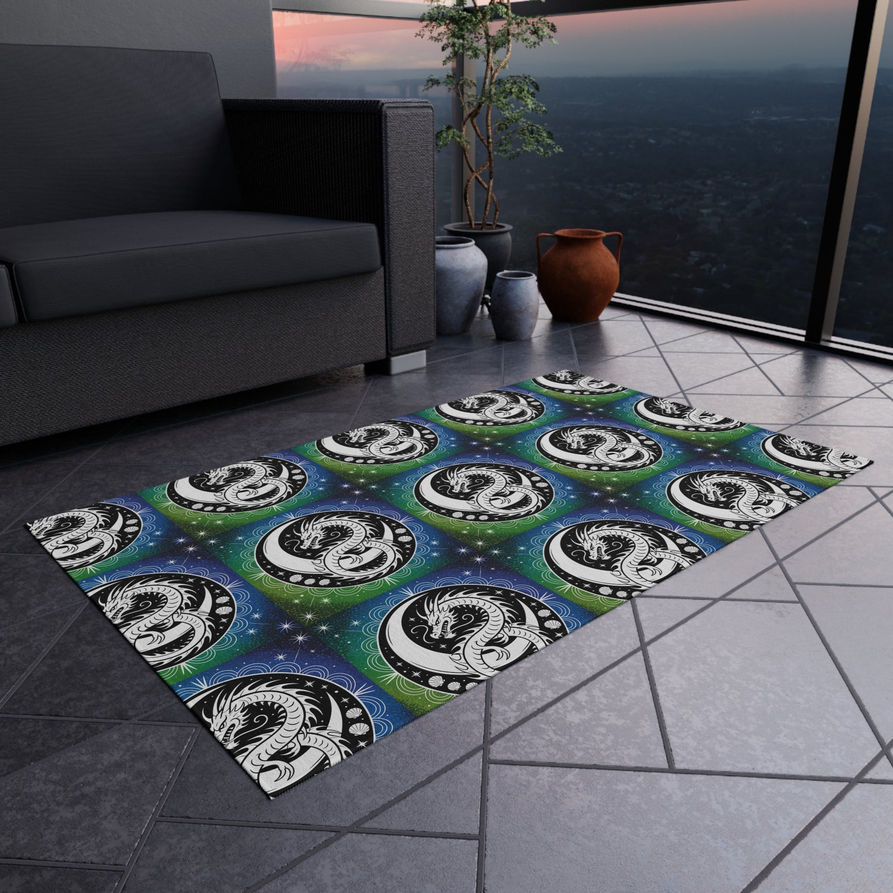 Bring a bohemian vibe to your outdoor space with this dragon design outdoor rug. Made of 100% polyester chenille, it is both plush and durable, perfect for outdoor use. The vibrant colors and unique design will add a touch of whimsy to your patio or garden. This rug is perfect for those who love eclectic decor and enjoy spending time outdoors, making it a great addition to summer parties and picnics.