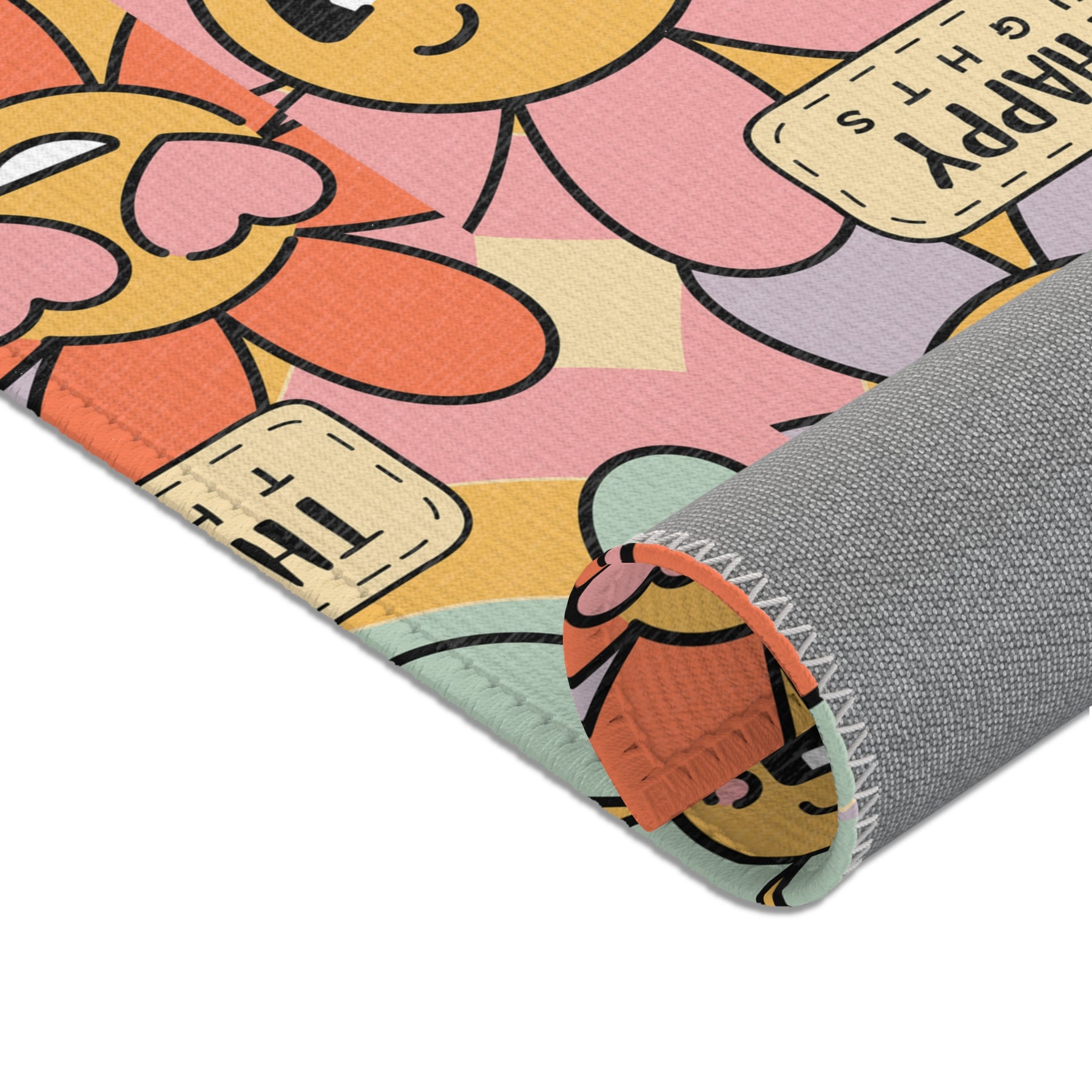 This Happy Vibes Area Rug will bring a cheerful atmosphere to any room in your home. Perfect for those who love bright and colorful decor, this rug is ideal for adding a pop of personality to your space. Great for holidays, celebrations, and everyday use.