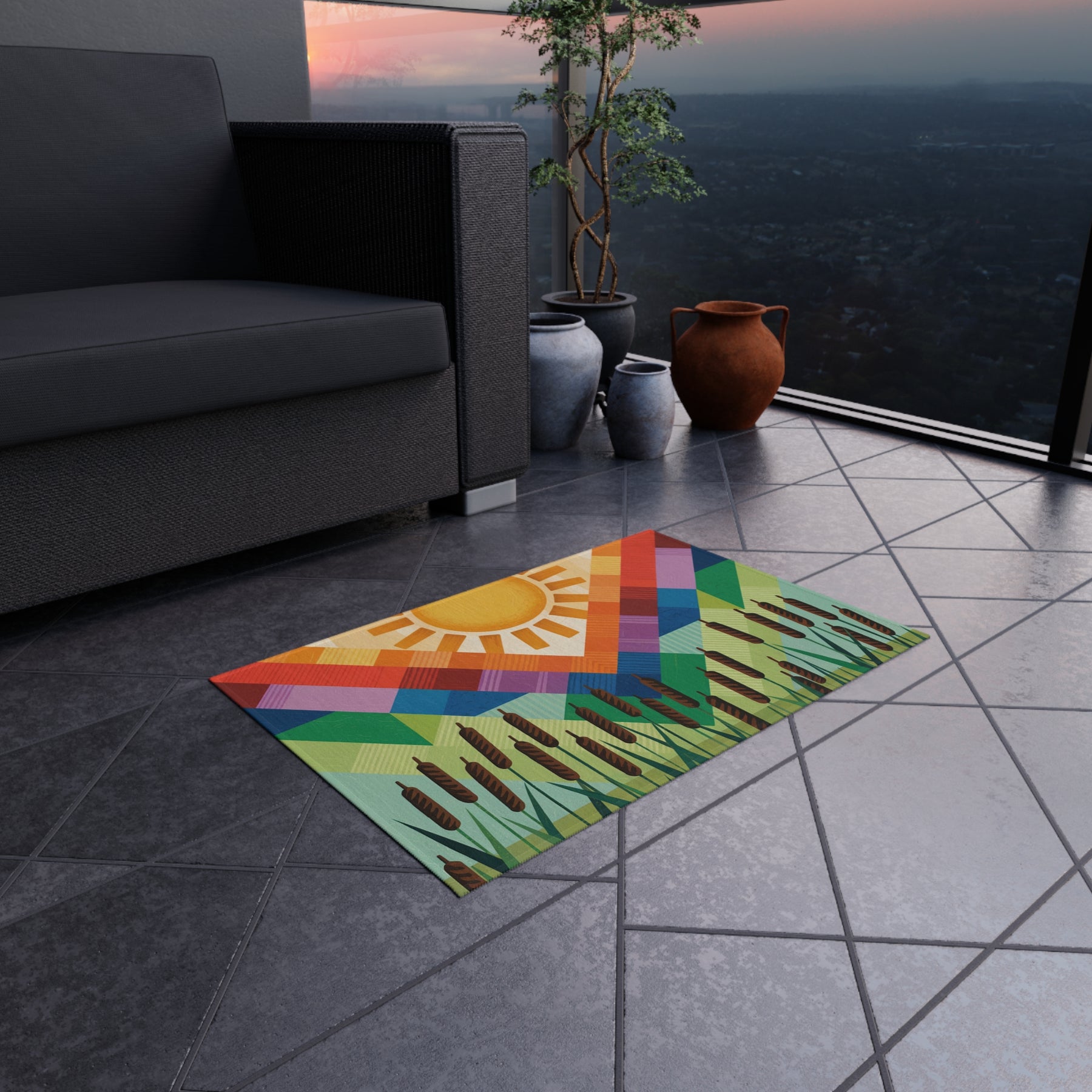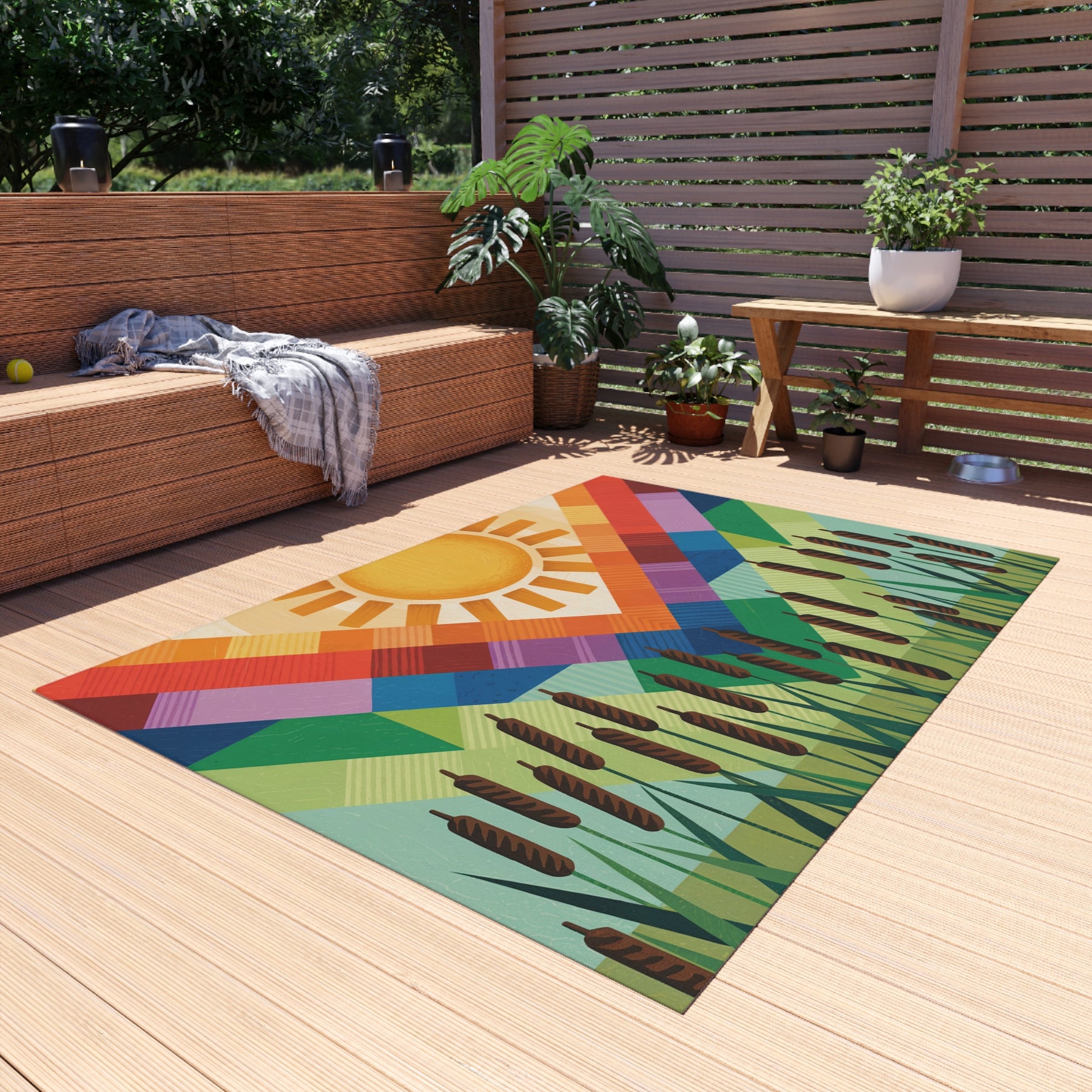 Seminole Design Outdoor Rug for Patios, featuring vibrant colors and a non-slip bottom. This rug gives a cozy and inviting atmosphere to outdoor spaces, perfect for anyone looking to add a pop of color to their patio decor. Ideal for outdoor gatherings, summer BBQs, and patio relaxation.