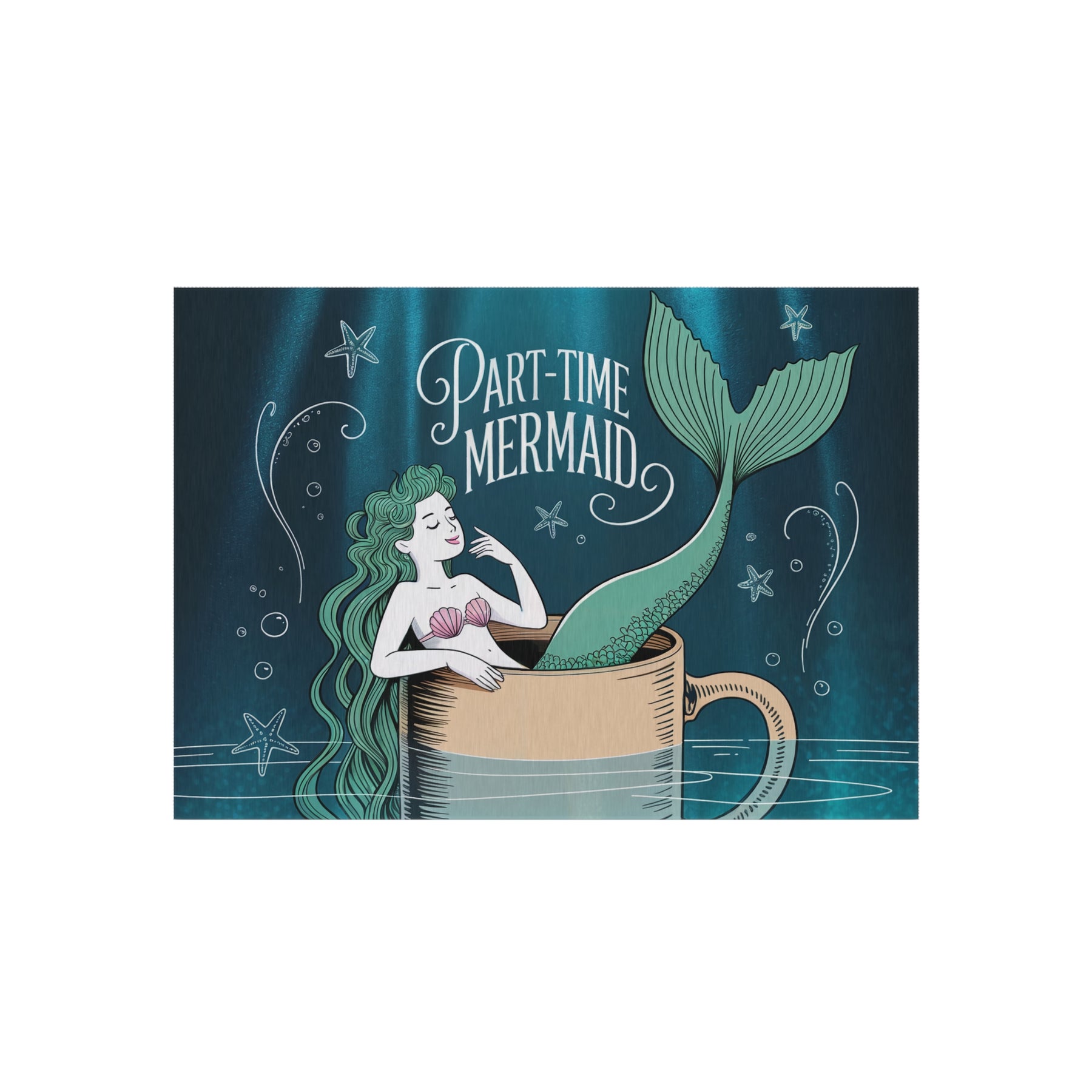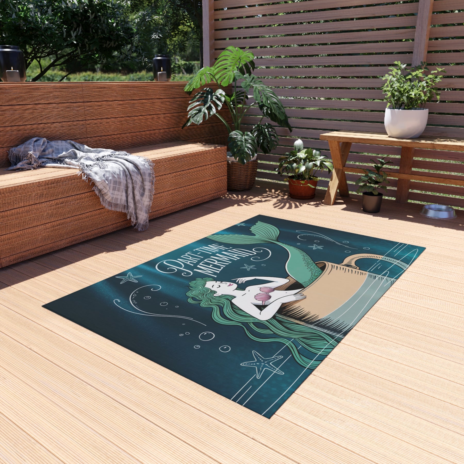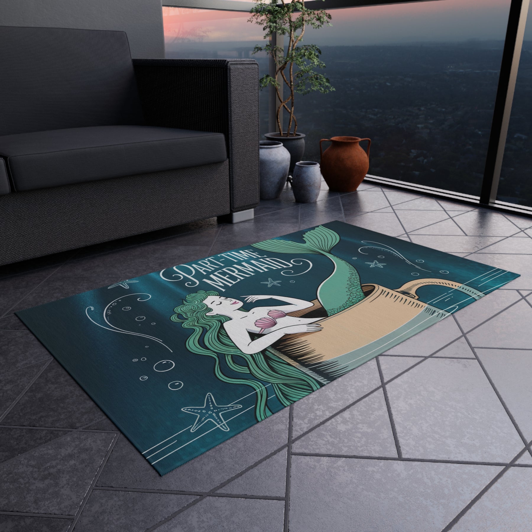 Bring a touch of coastal charm and mermaid magic to your outdoor space with this Part-Time Mermaid Outdoor Rug. Perfect for beach house decor or anyone who loves the sea, this rug embodies a relaxed and carefree vibe. Ideal for summer gatherings, beach parties, or simply adding a whimsical touch to your patio or deck. Let the world know that you are a part-time mermaid.