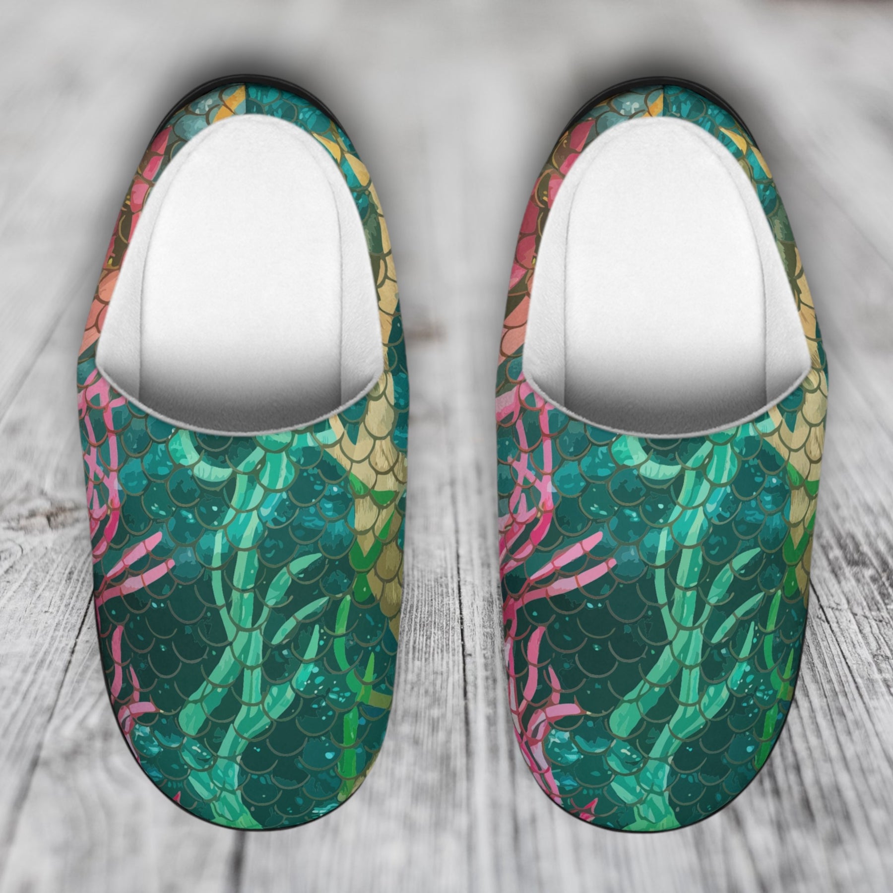 "Wrap your feet in oceanic magic with the Women's Indoor Slippers - Mermaid Scale Net from Sea Dragon Dreams! Featuring a mesmerizing mermaid scale net design, these slippers bring a touch of enchantment to your relaxation routine. Made with a plush, soft interior for ultimate comfort and durable soles for everyday wear, they’re perfect for lounging at home in cozy style. Dive into comfort—grab your Mermaid Scale Net Slippers today!"